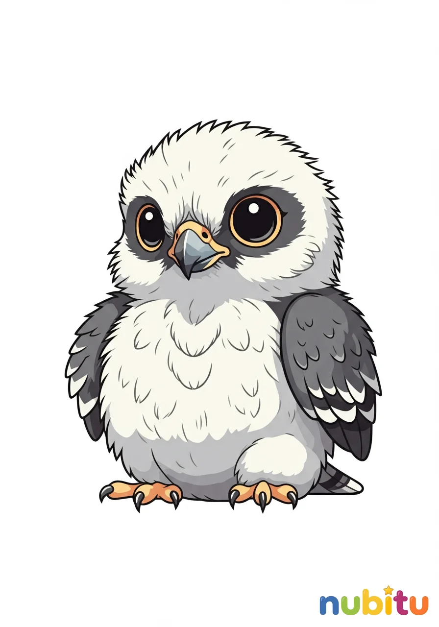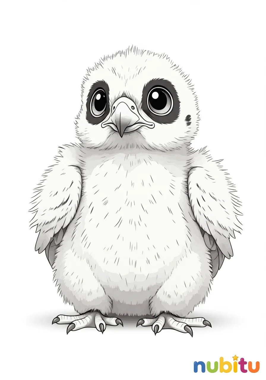 Una adorable representación de un polluelo de halcón gerifalte, con sus plumas suaves y una expresión de curiosidad. Perfecto para los más pequeños que quieren colorear un animalito tierno.