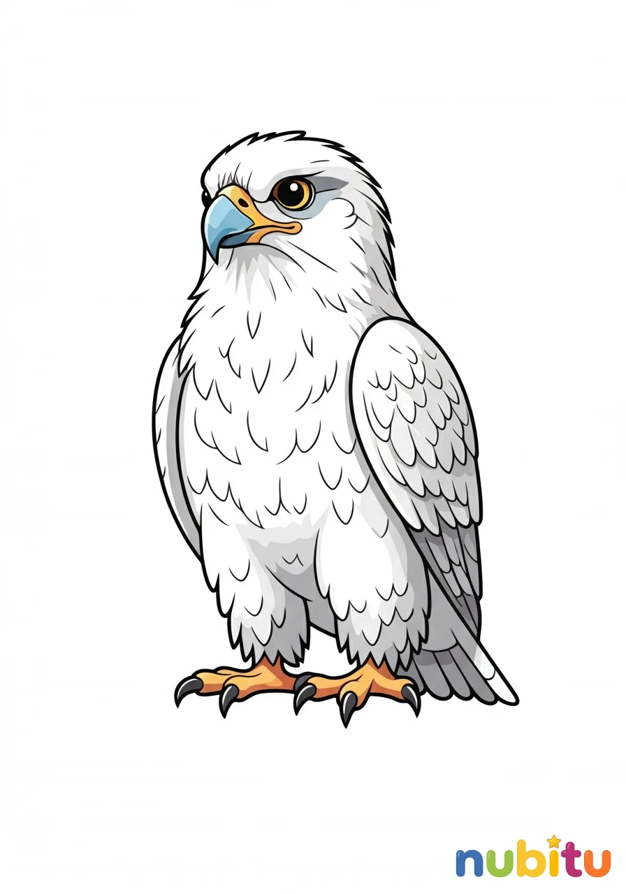 ¡Hola, pequeño artista! Aquí tienes un hermoso halcón gerifalte esperando tus colores. Mira sus ojos grandes y curiosos, y sus plumas listas para volar. ¿De qué color lo pintarás hoy?