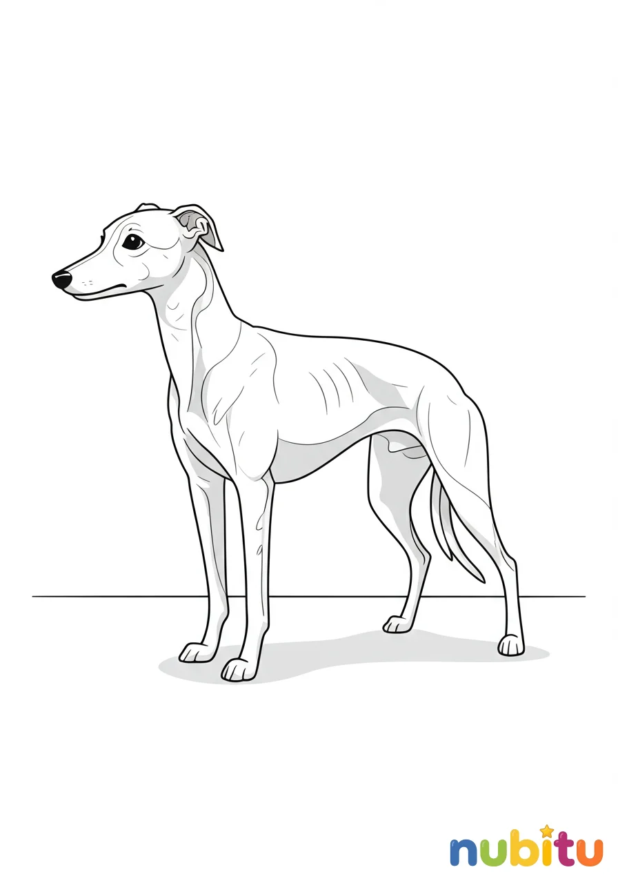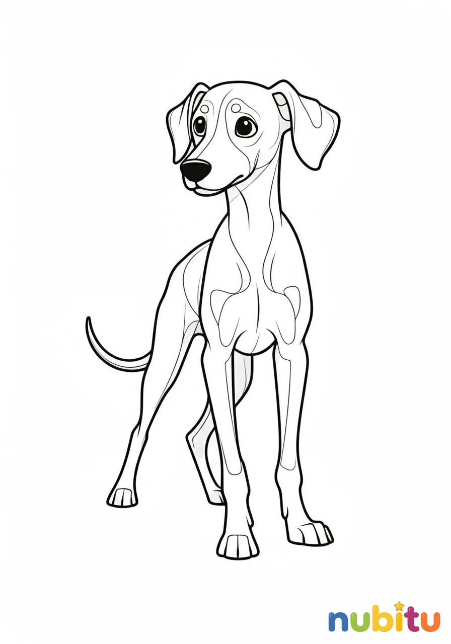 ¡Prepárate para darle vida a este lebrel tan alegre! Con sus patas largas y su cola curiosa, está listo para jugar. ¿De qué color lo pintarás? ¡Usa tus colores más divertidos para esta aventura a toda velocidad!