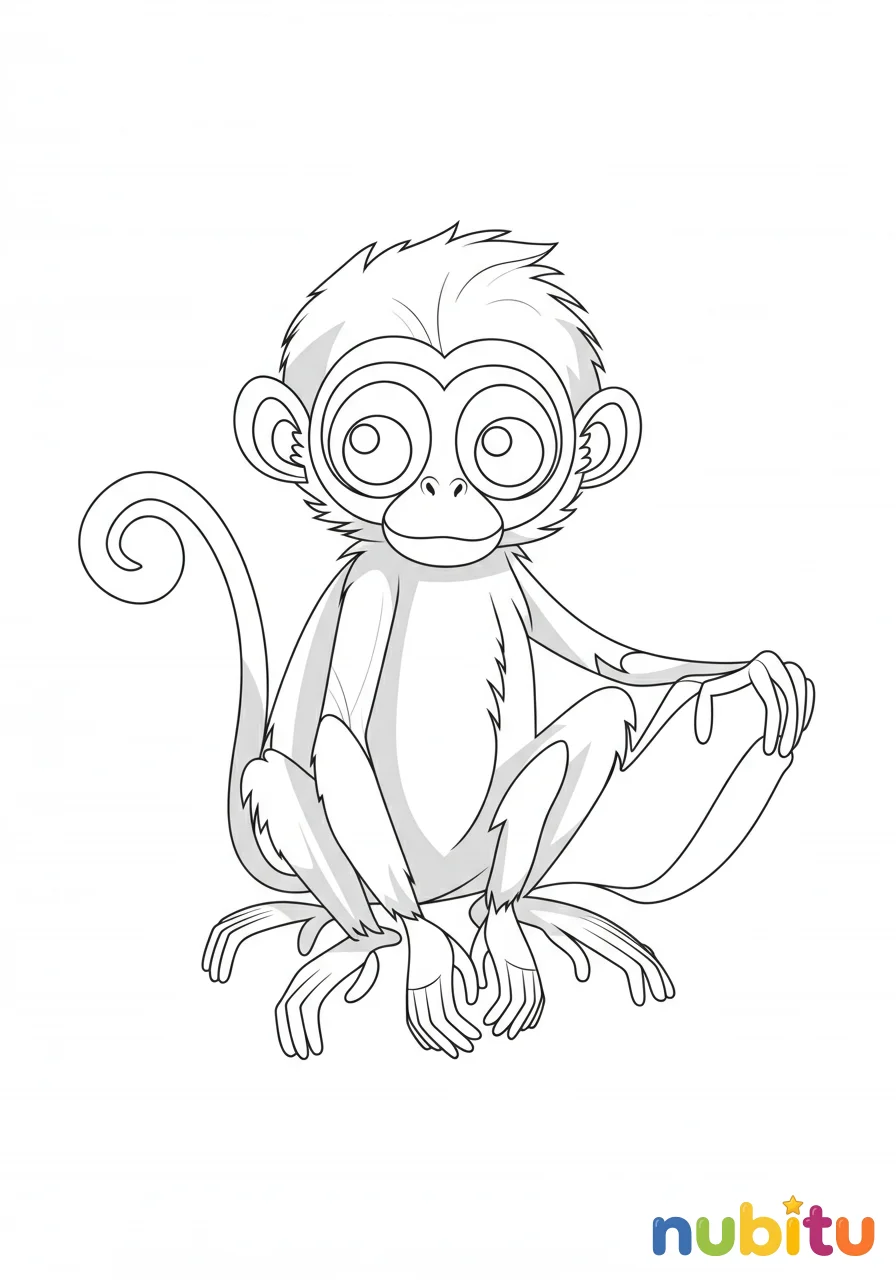 ¡Mira qué divertido mono araña de cabeza negra! Parece que está a punto de dar un gran salto o colgarse de una rama. ¡Espera con emoción los colores que le darás! ¡Diviértete mucho!