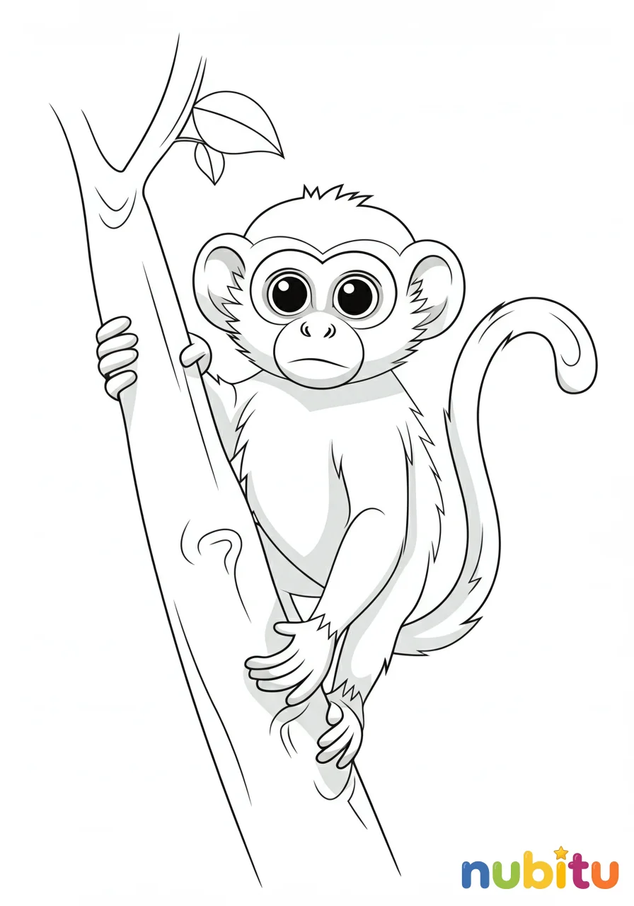 Un adorable mono chato, con una expresión de pura curiosidad, se sujeta firmemente a una rama robusta. Sus ojos grandes y redondos observan el mundo con asombro, listo para su próxima aventura en la copa de los árboles.