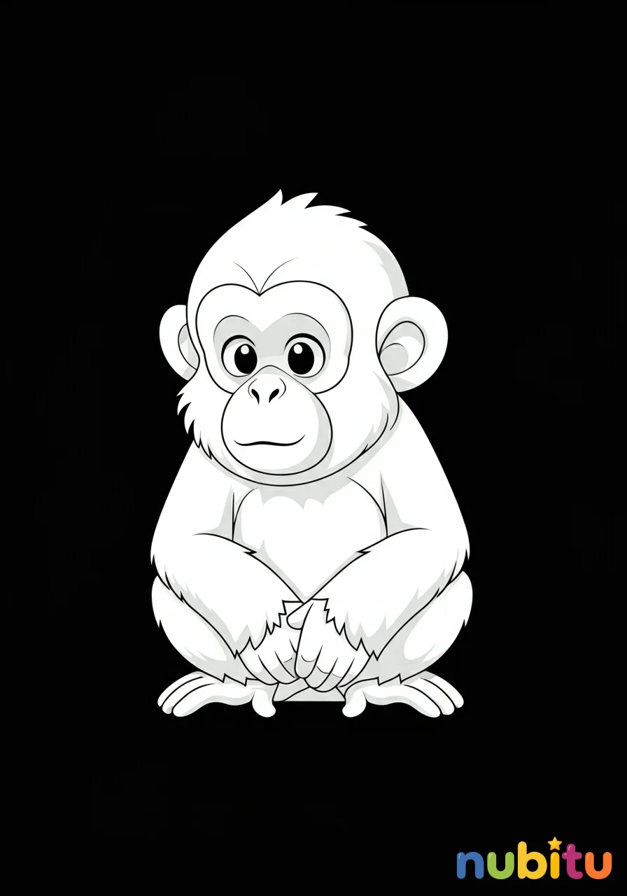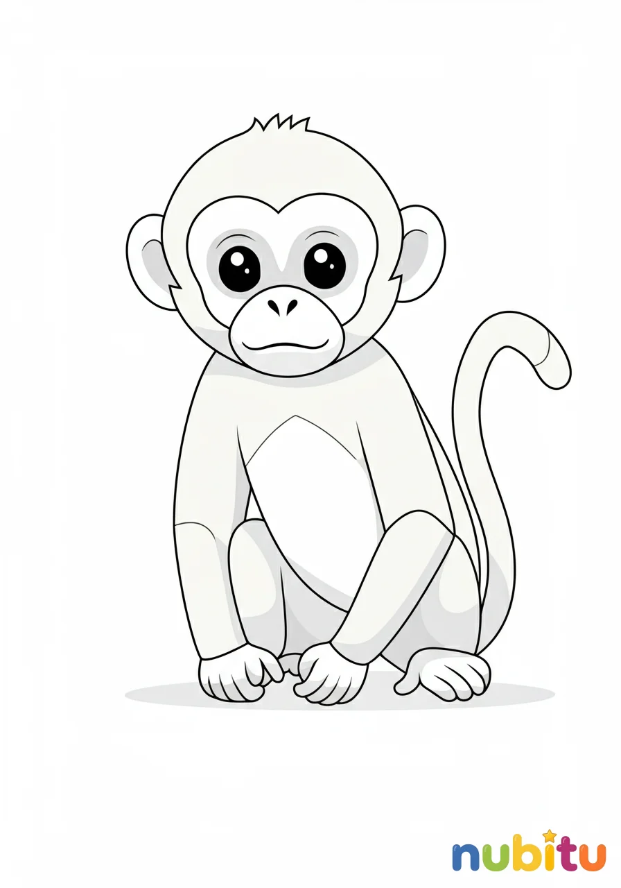 Este mono chato está muy relajado, ¡listo para un día de colorear! Imagina los colores suaves para su pelaje o tal vez colores muy vivos. ¡Tú eres el artista y decides cómo hacerlo!