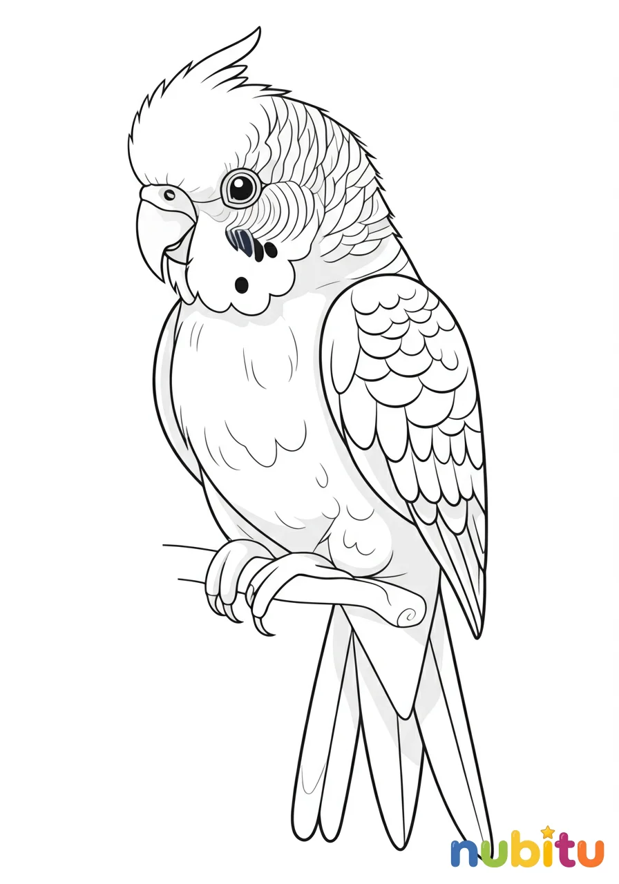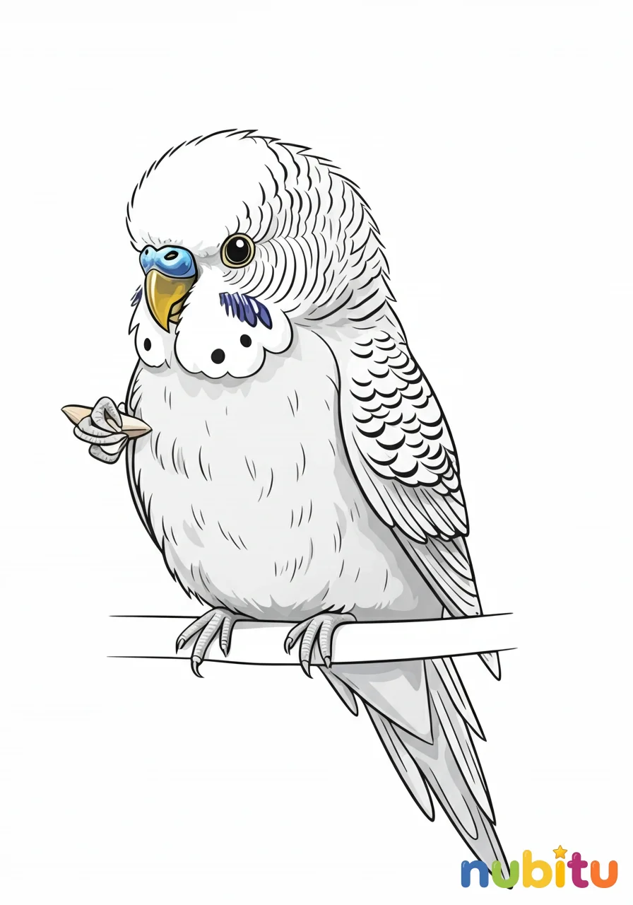 • ¡No olvides colorear el entorno! Puedes añadir hojas, flores o un cielo soleado para que tu periquito tenga un hogar.