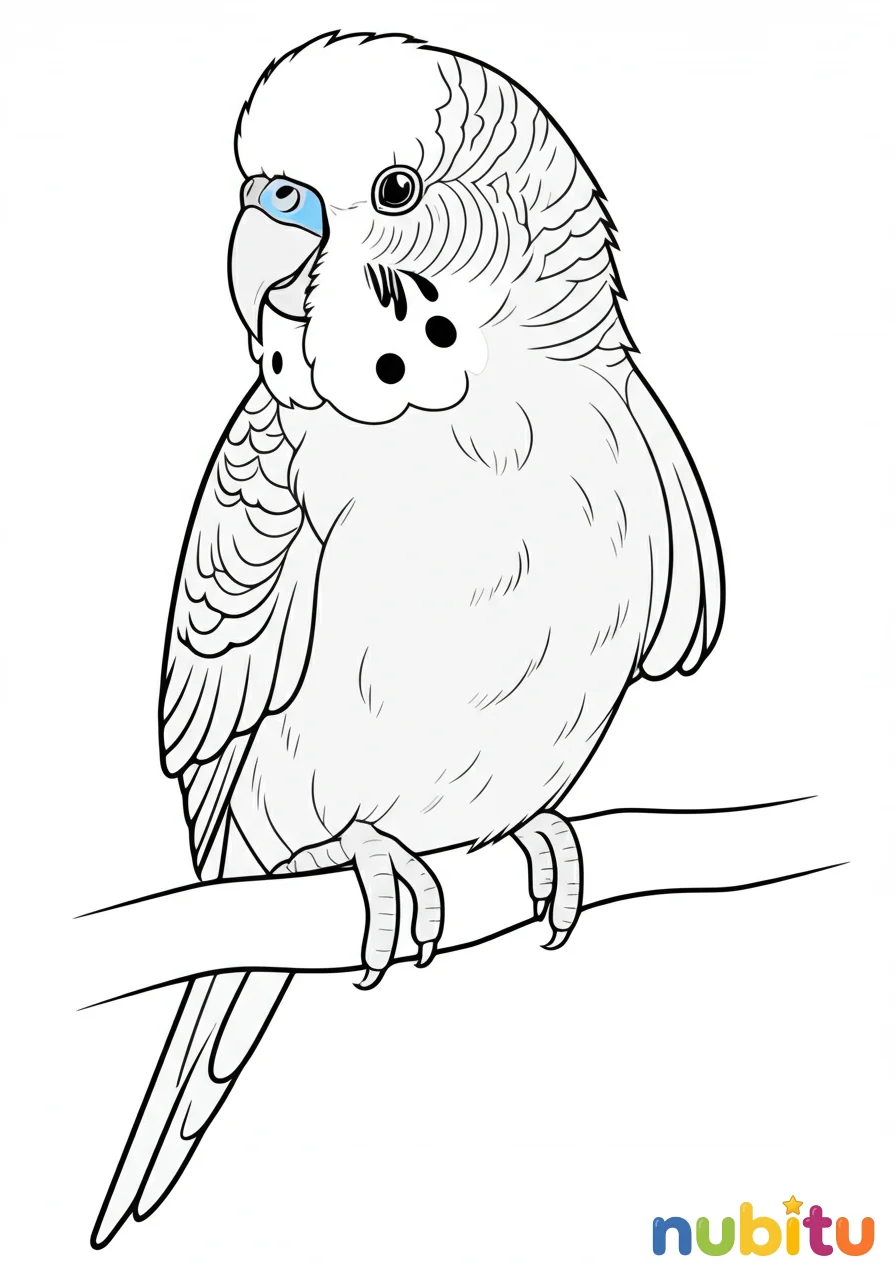 ¡Imagina los colores más bonitos para este periquito azul que parece estar soñando con aventuras! ¿Será muy azul, o tendrá toques de otros colores?