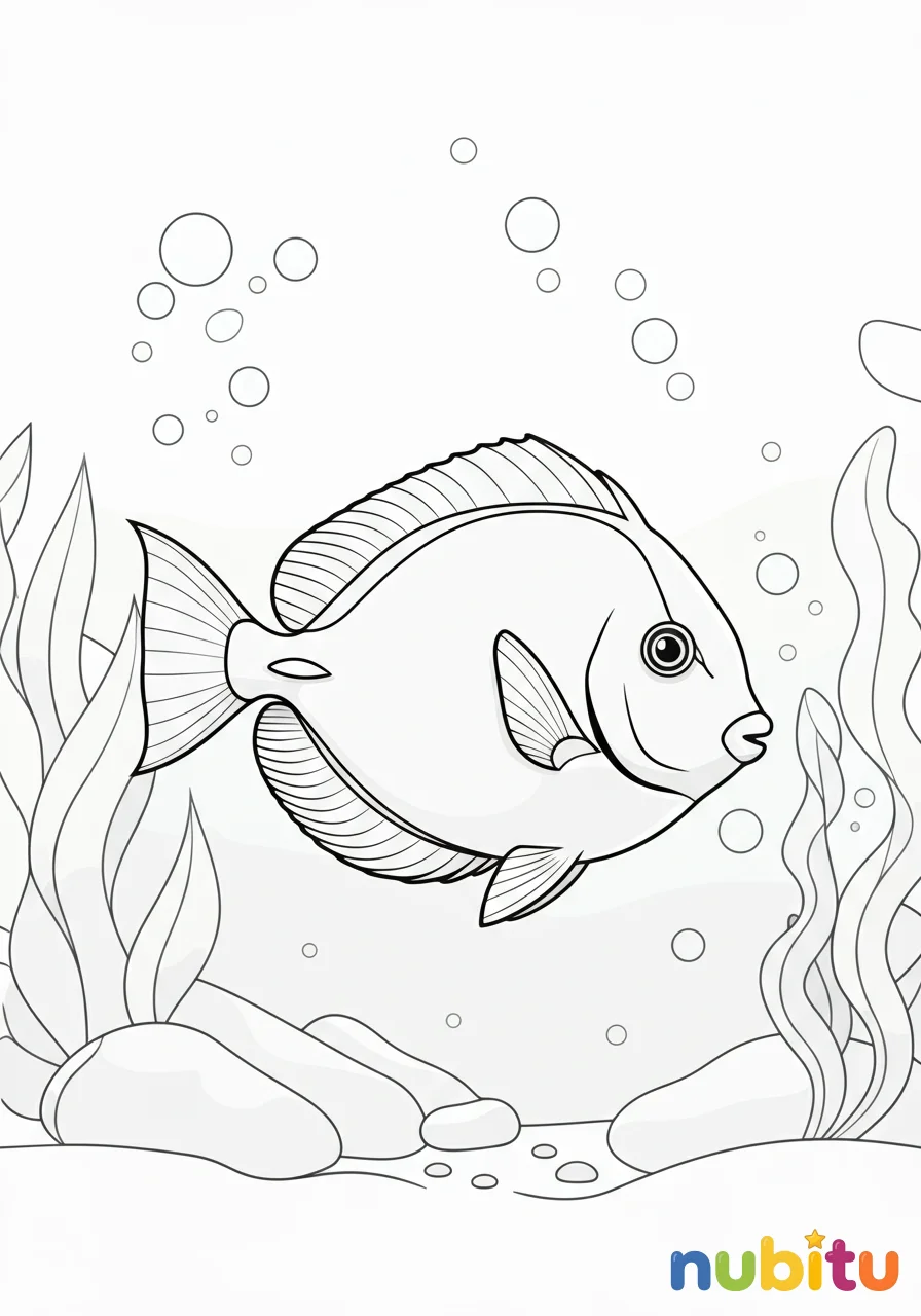 - ¡A colorear!: Dale vida a tu pez con tus colores preferidos. ¡No olvides su «bisturí»!