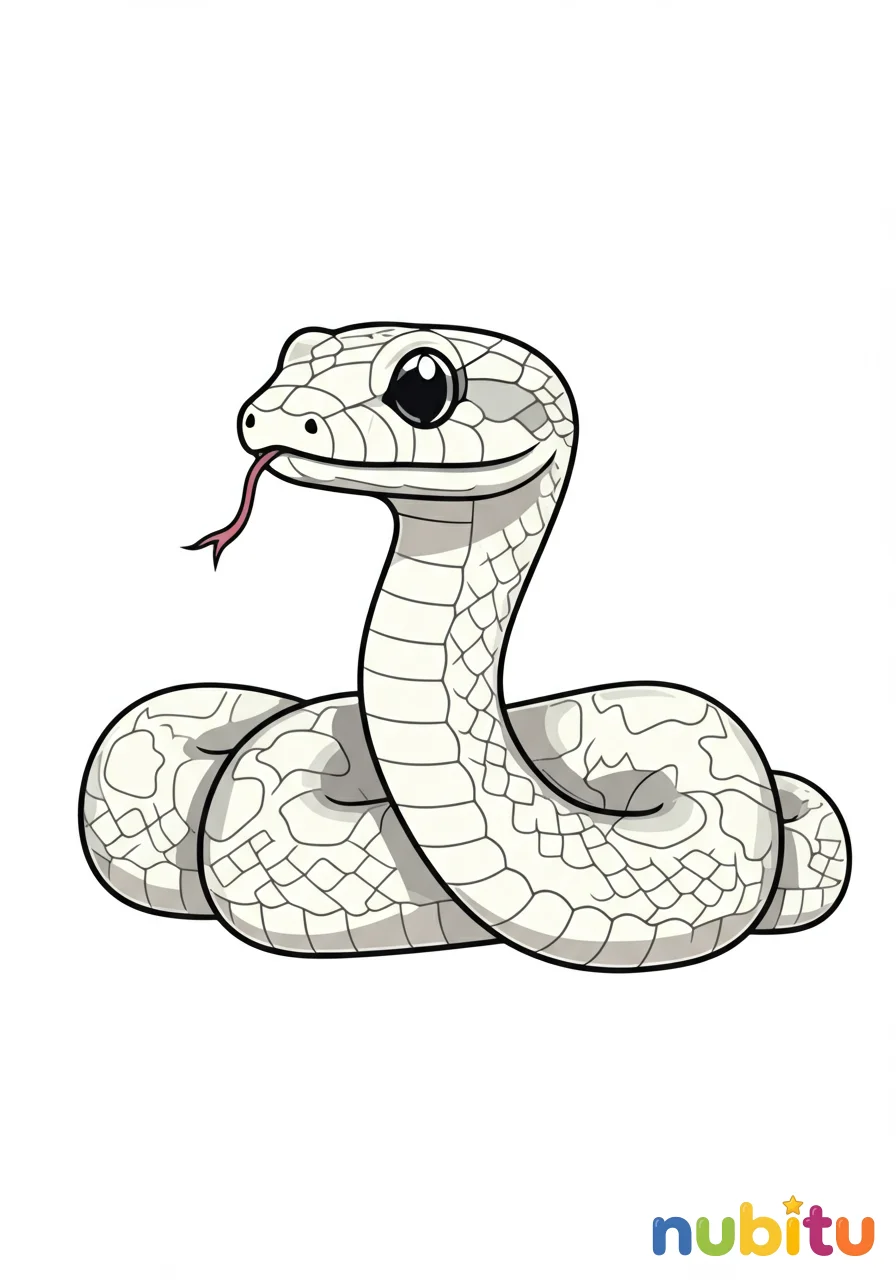 Esta pitón bola está estirándose un poquito, ¡parece que está explorando algo interesante! Dale vida con colores brillantes y patrones divertidos en sus escamas.