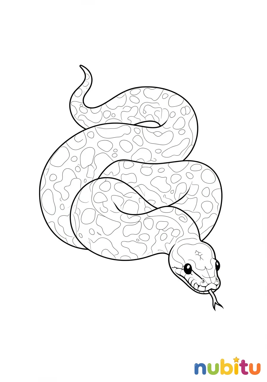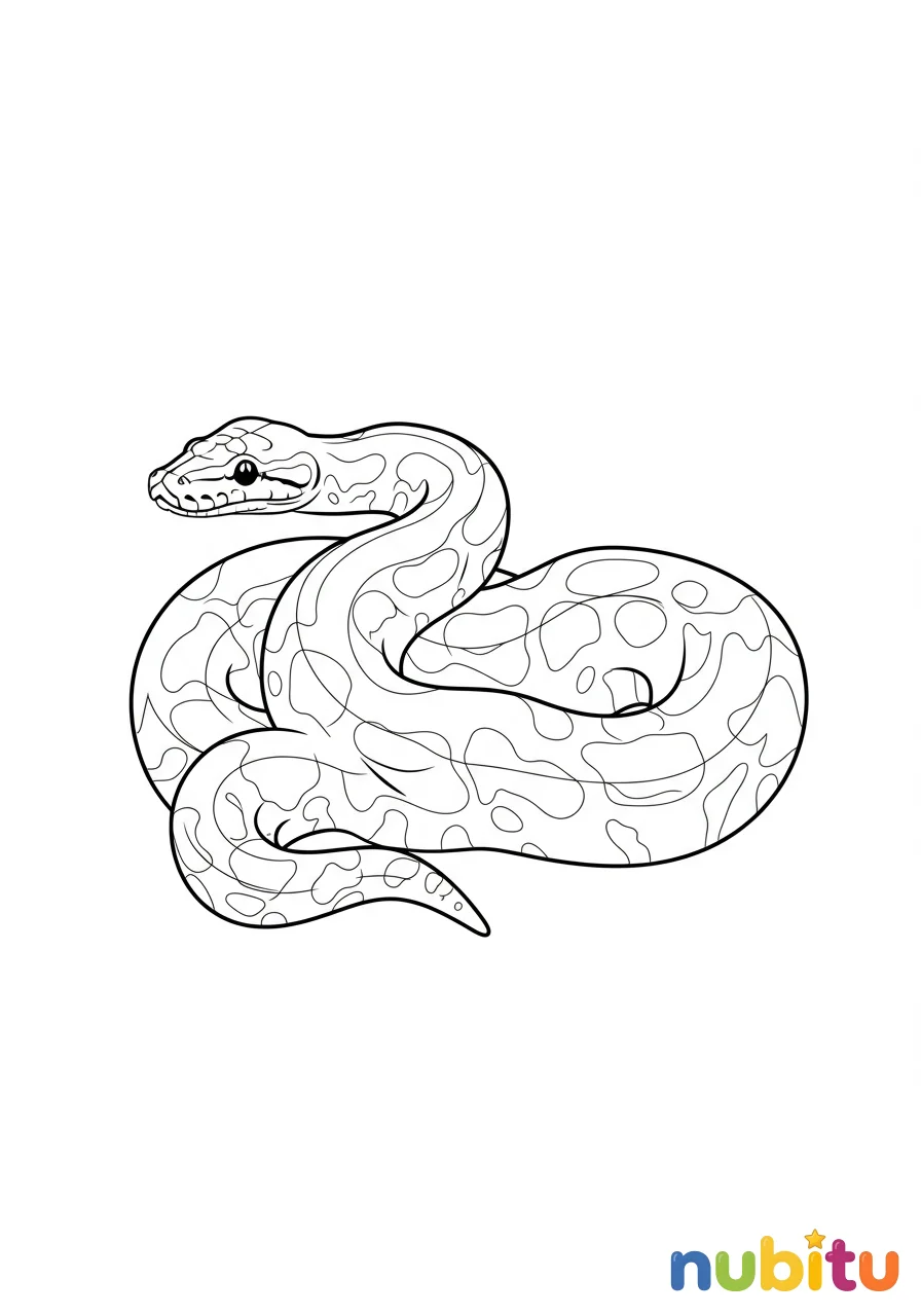 ¡Mira esta pitón bola tan tranquila! Está enrolladita, lista para un largo sueño. Puedes usar tus colores favoritos para que su piel escamosa sea la más bonita de todas.
