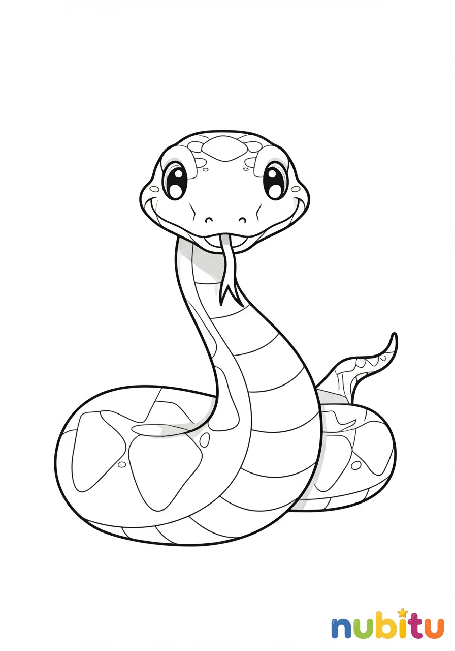 ¡Qué atenta está esta pitón! Ha levantado un poco su cabeza para observar el mundo. Imagina qué colores tan chulos puedes ponerle a su cabecita y cuerpo.
