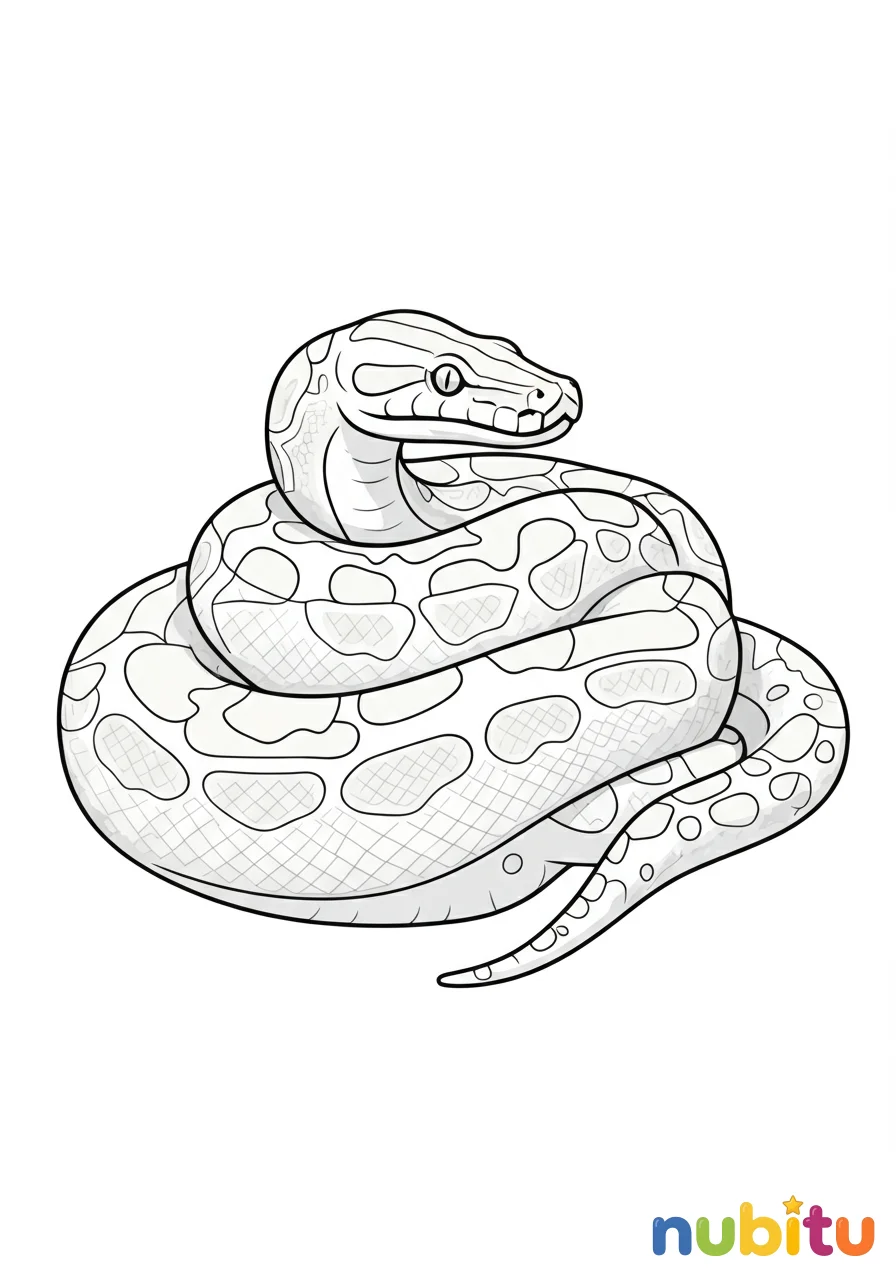 Pitón enrollada tranquila, patrón escamoso detallado, reptil pacífico para pintar