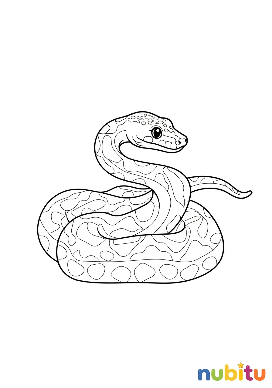 ¡Qué pitón tan grande y tranquila! Parece que está descansando o esperando un abrazo de color. ¡Haz que su piel brille con tus lápices!
