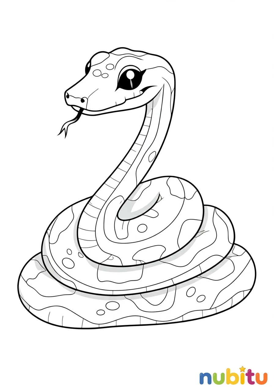 ¡Mira qué pitón tan simpática! Está enrolladita, lista para que la llenes de tus colores favoritos. ¿Será amarilla, verde o de muchos colores? ¡Tú decides!