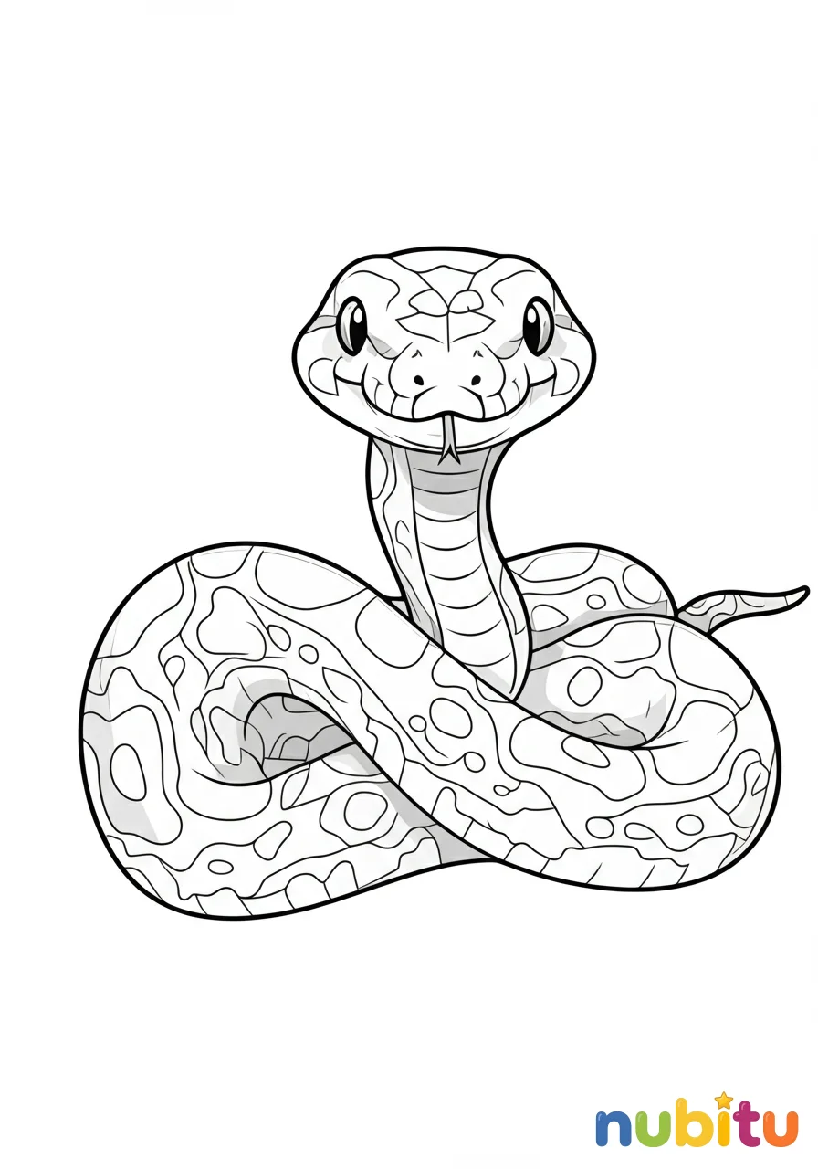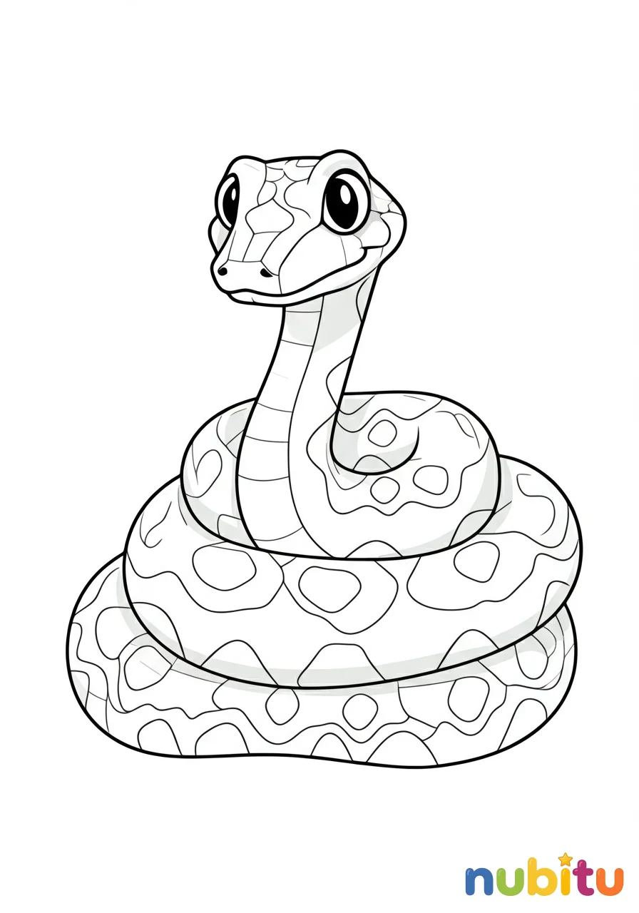 ¡Mira qué curiosa es esta pitón! Está enrollada y lista para que la llenes de colores vibrantes. ¿Será verde, marrón o de muchos colores? ¡Tú decides!