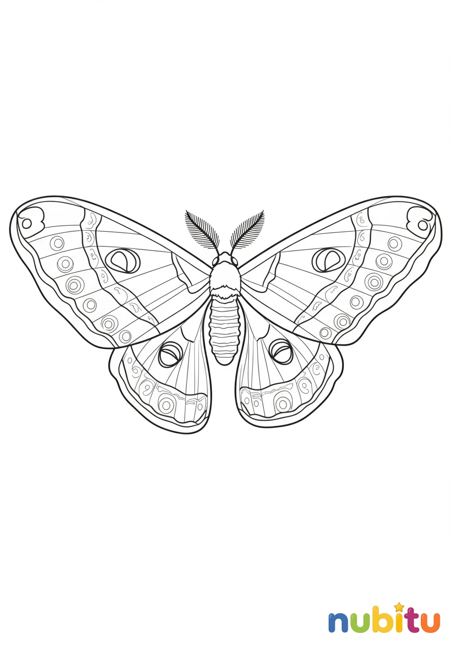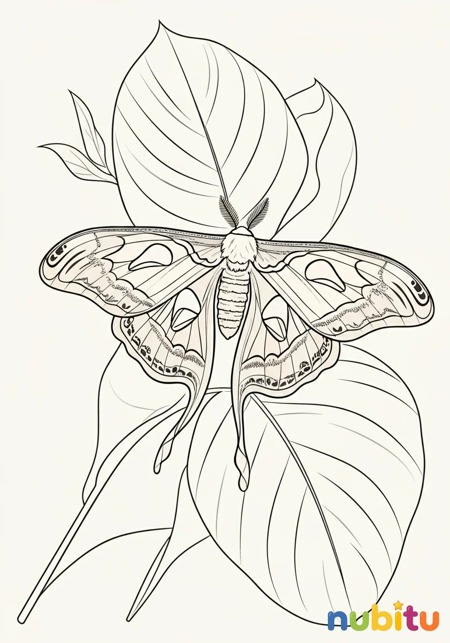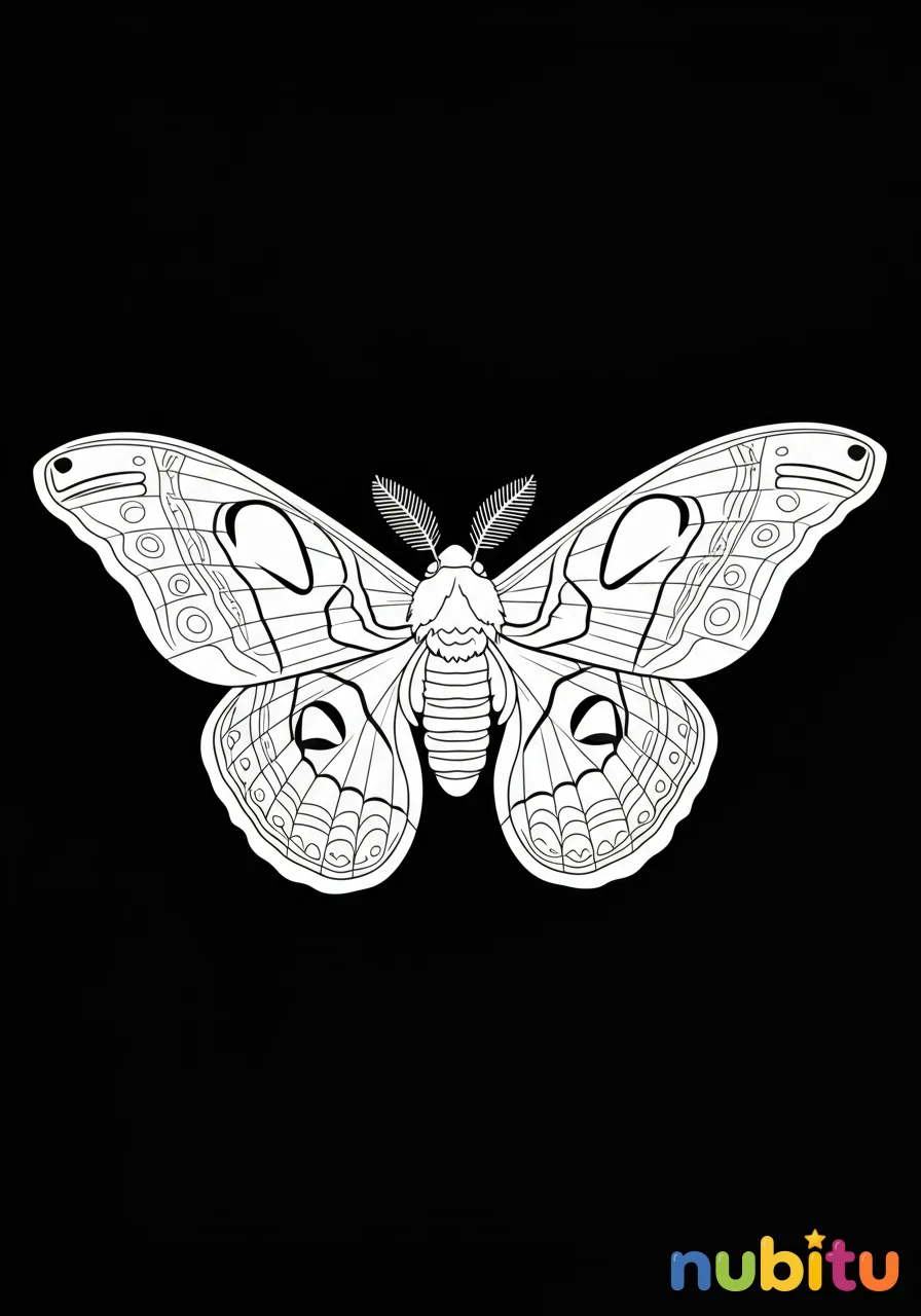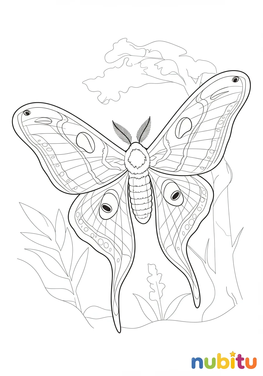 Esta polilla Atlas tiene unos dibujos muy especiales en sus alas. ¡Son como pequeños mapas para que tu imaginación vuele! Usa tus colores favoritos para hacerla brillar.