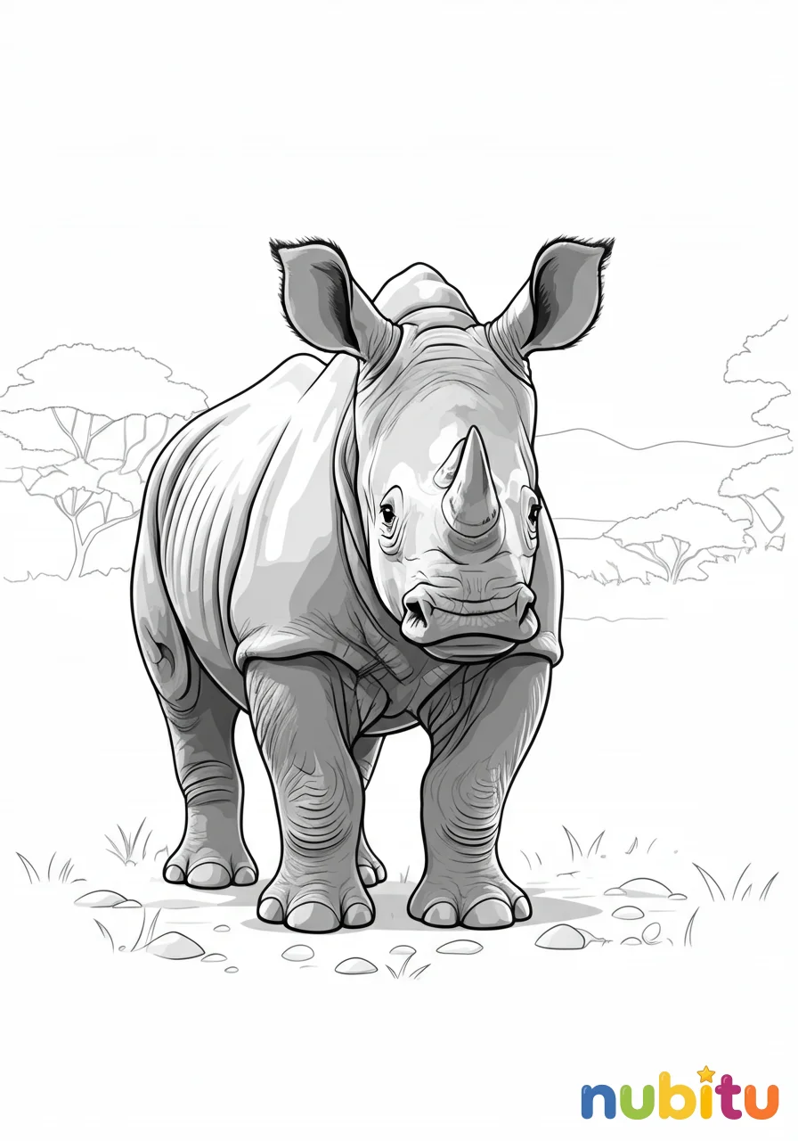 - ¡No olvides el fondo! Puedes dibujar un poco de sabana, árboles o un cielo soleado para que tu rinoceronte se sienta en casa.