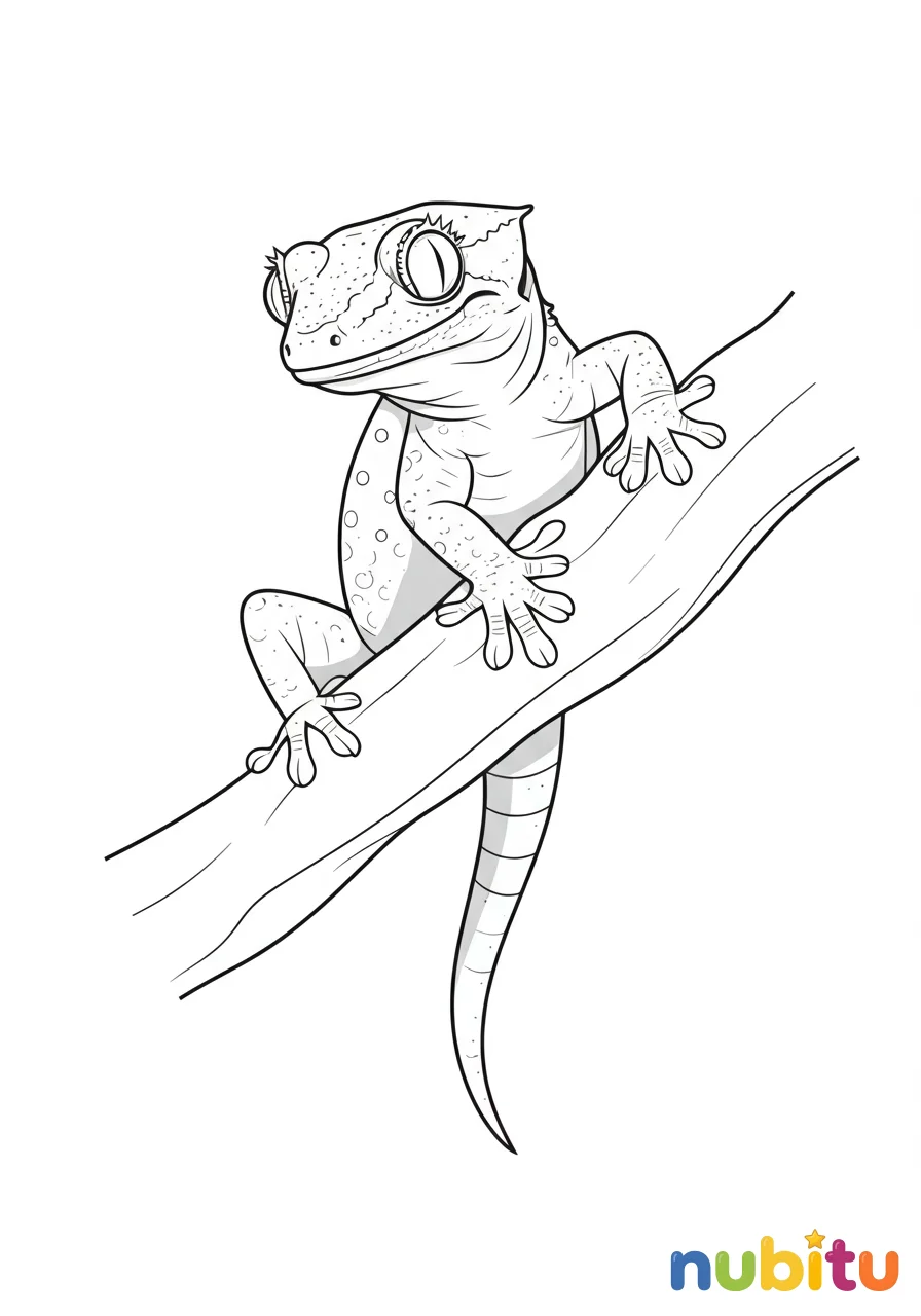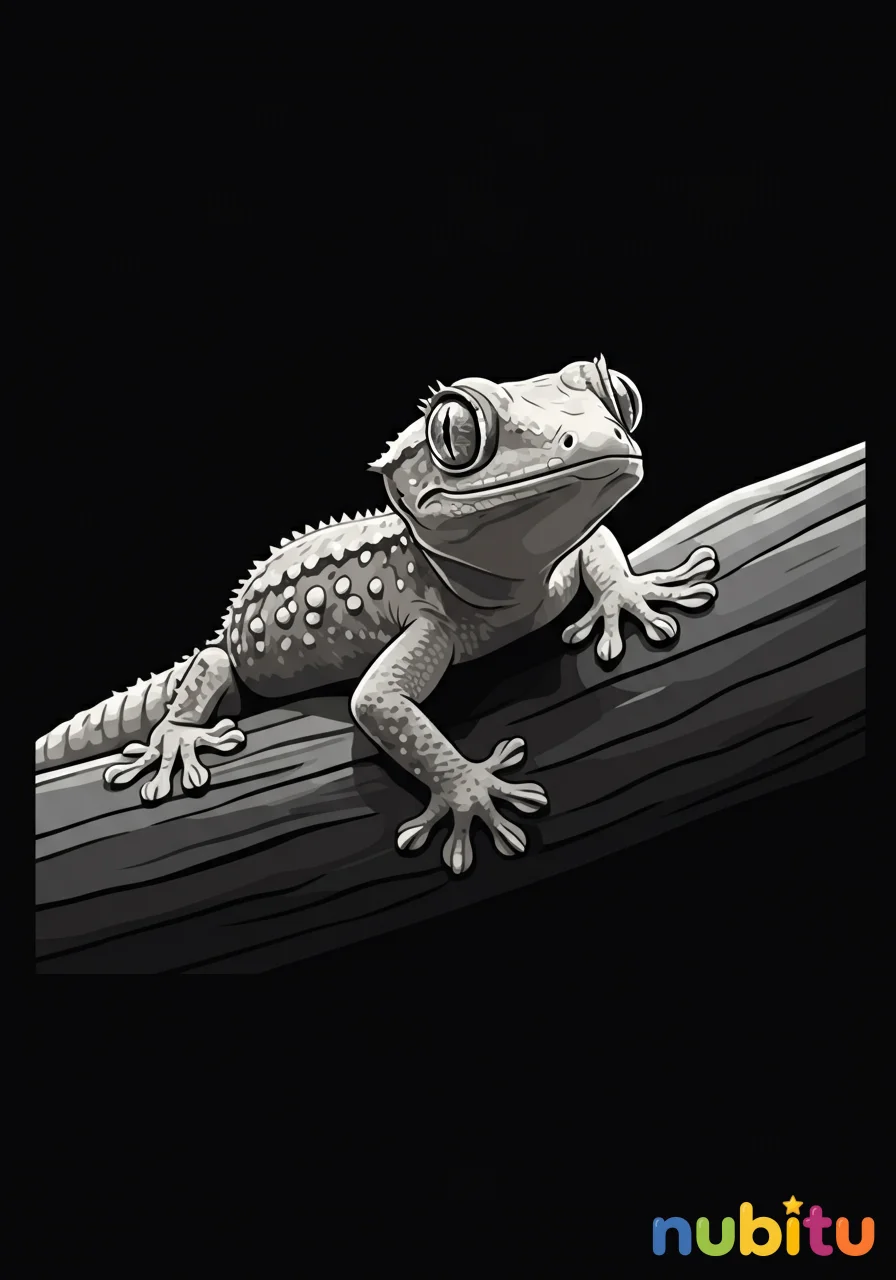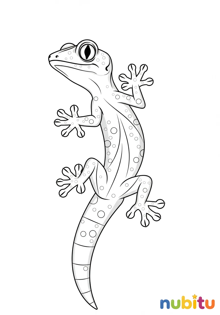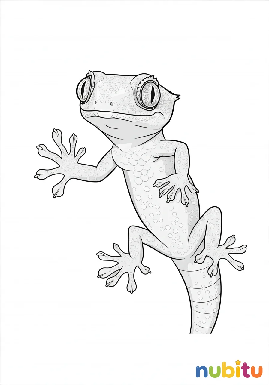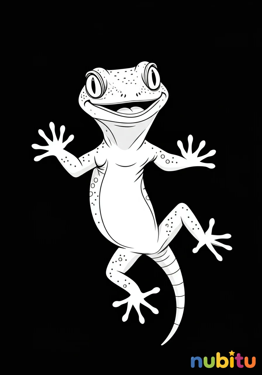 Un dibujo encantador de una salamanquesa común con una expresión curiosa, lista para explorar el mundo con sus patitas pegajosas y su mirada vivaz.