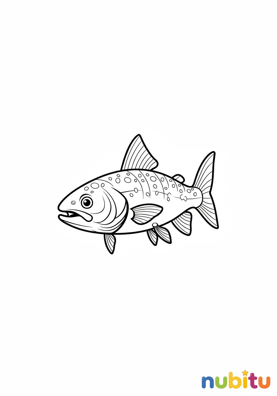 ¡Mira qué pequeñín! Este es un bebé salmón, apenas está empezando su aventura en el océano. ¿Te animas a darle vida con tus colores más brillantes? ¡Seguro que le encantará!
