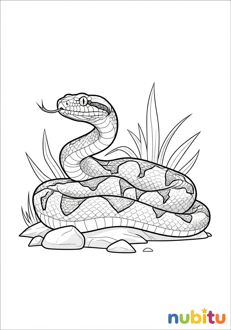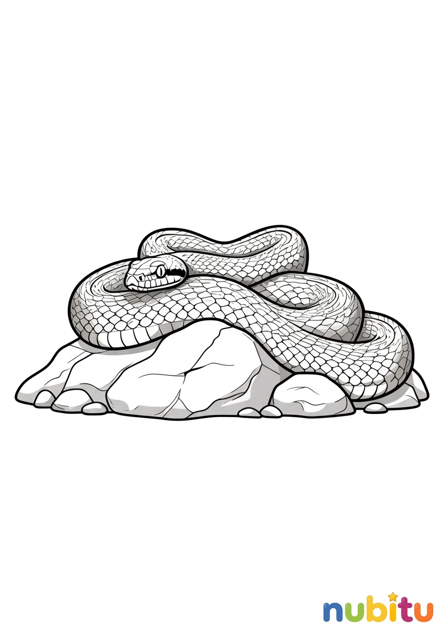 Aquí vemos a una majestuosa serpiente toro en un momento de calma, relajada sobre una superficie plana, quizás una roca cálida. Sus patrones se extienden a lo largo de su cuerpo, invitando a colorear cada detalle.