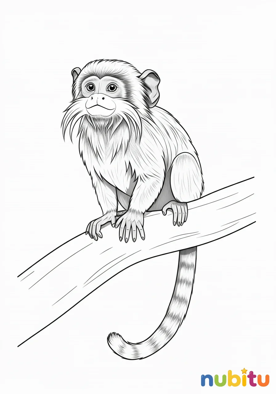 ¡Este tamarino juguetón está listo para la aventura contigo! ¡Imagina qué travesuras hará mientras lo coloreas con tus colores favoritos y le das vida a su gran personalidad!
