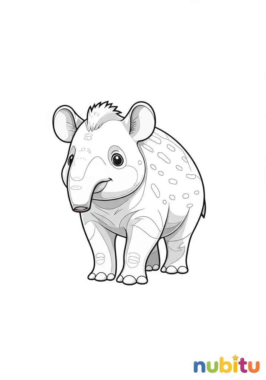 Mira a este adorable tapir andino bebé. ¿De qué color será su pelaje cuando crezca? ¡Imagina y colorea a este pequeño explorador de la montaña!