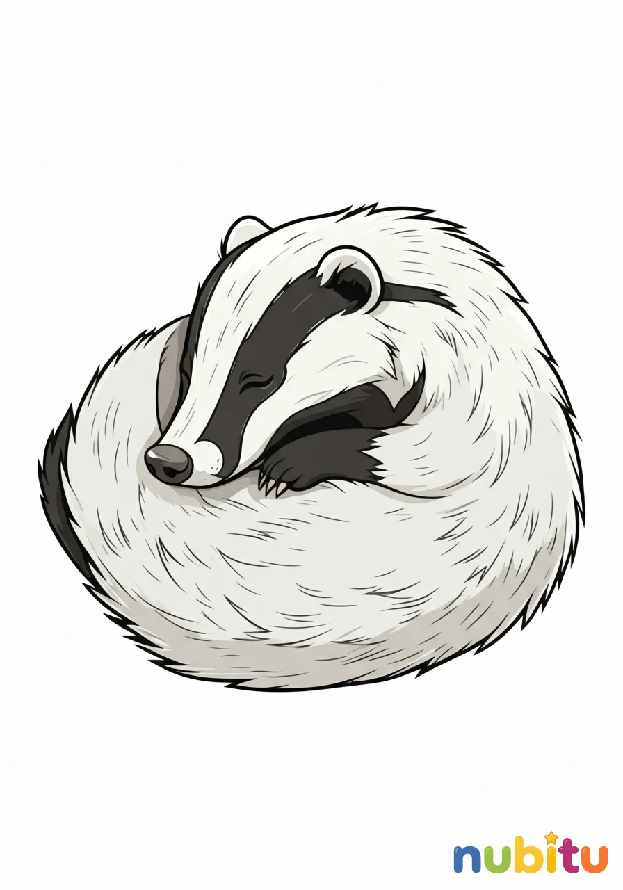¡Qué tejón más tranquilo! ¿Qué colores usarás para su suave pelaje mientras descansa? ¡Haz que su sueño sea muy colorido!