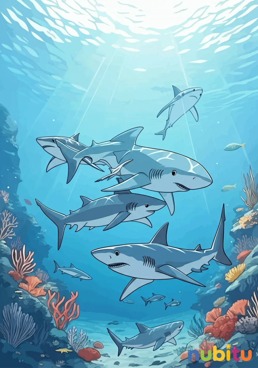 Un destello plateado llamó la atención de Nubitu mientras jugaba en la orilla, no con un barco de juguete, sino con una pequeña lupa exploradora. No era un pez, ni una gaviota. Era un mapa, enrollado y misterioso, que parecía brillar con la espuma de las olas. ‘¡Un tesoro!’, exclamó Nubitu con su voz de pequeño aventurero. El mapa no hablaba de oro, sino de un lugar secreto en el fondo del mar, donde ‘las colas danzan como cintas al viento’. Intrigado, Nubitu se puso su traje de buzo imaginario y, con su mapa bien guardado, se zambulló en la piscina de su imaginación. El agua se volvió azul profundo, y los peces de colores lo saludaban al pasar. Siguió las líneas onduladas del mapa, que lo llevaban por arrecifes vibrantes y cuevas ocultas. De repente, una sombra alargada se movió con elegancia en la distancia. Luego otra, y otra más. Eran los Tiburones Zorros, con sus colas majestuosas moviéndose con una gracia asombrosa. Eran más grandes y amigables de lo que había imaginado, sus ojos curiosos observando a Nubitu. Uno de ellos, el más pequeño, se acercó, y con un movimiento suave de su cola, le mostró a Nubitu dónde encontrar las algas más brillantes para decorar sus dibujos. Nubitu se sintió el niño más afortunado del mundo, flotando entre estas maravillosas criaturas, listo para capturar su belleza en cada trazo de su mente. ¡Qué aventura tan increíble había encontrado!