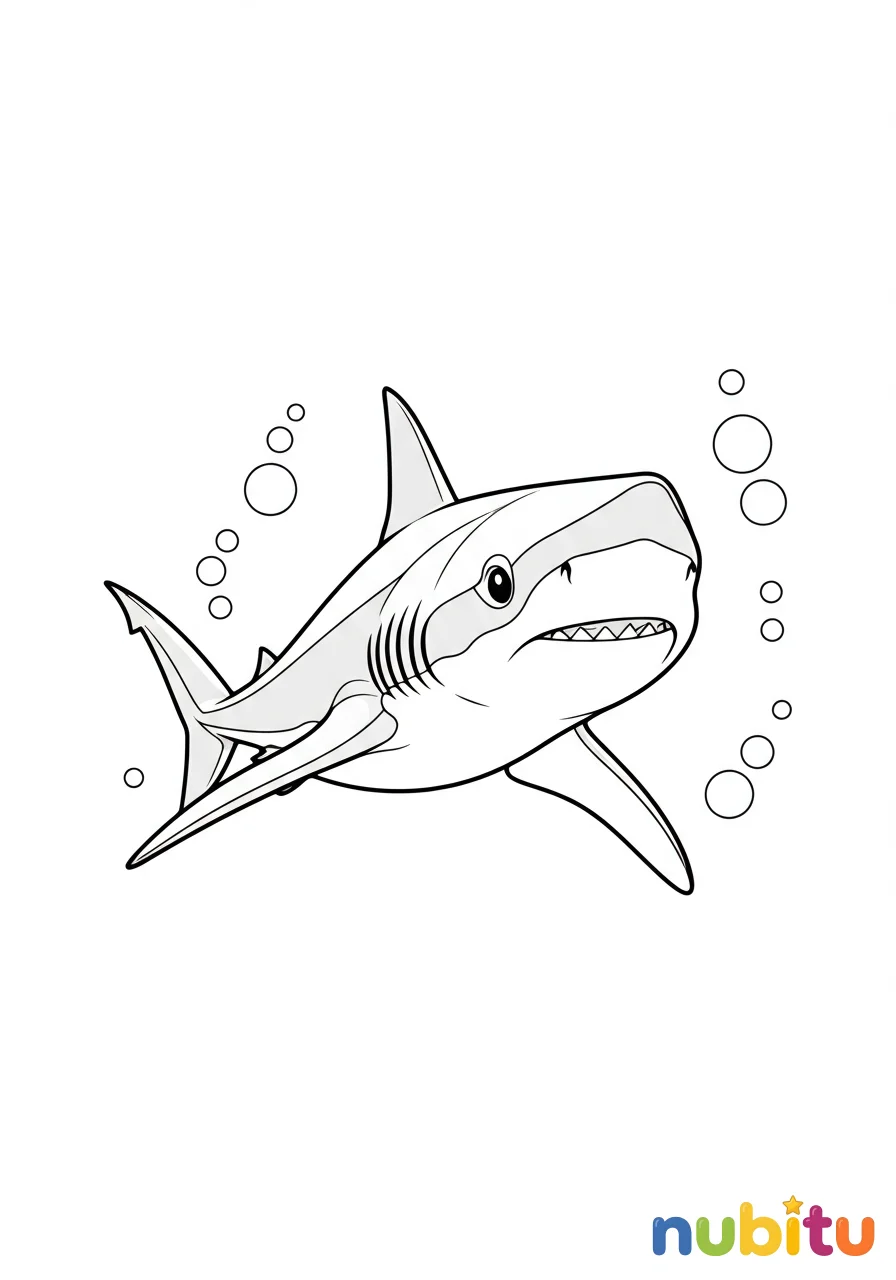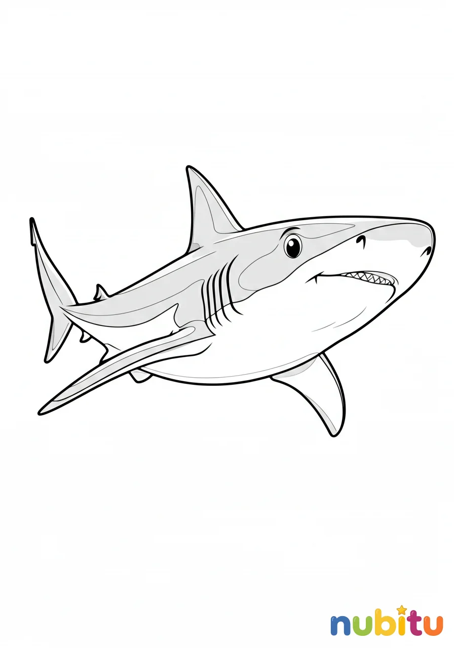 Mira qué mirada tan curiosa tiene este tiburón zorro. ¡Parece que está muy contento de conocerte! Coge tus lápices y dale vida con tus colores favoritos. ¡Imagina sus aletas y su cola moviéndose en el agua!