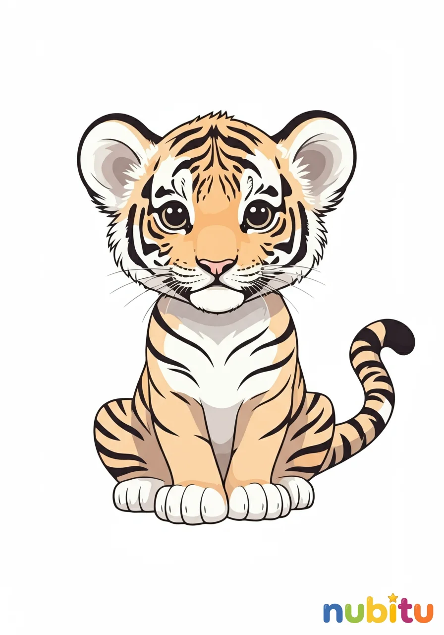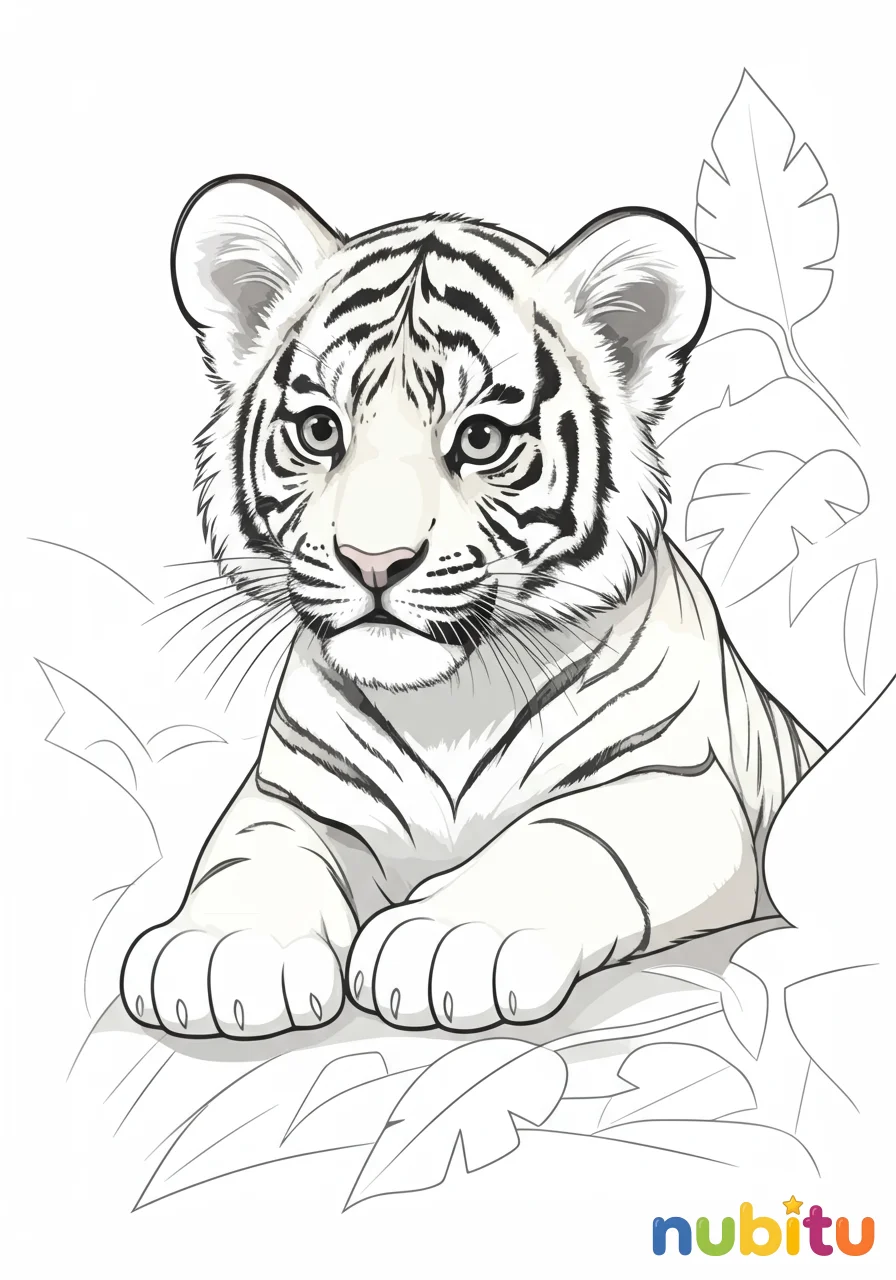 ¡Qué tierno! Aquí tienes un cachorro de tigre malayo esperando tus colores. Imagina cómo se verá cuando termines de pintar a este pequeño explorador.