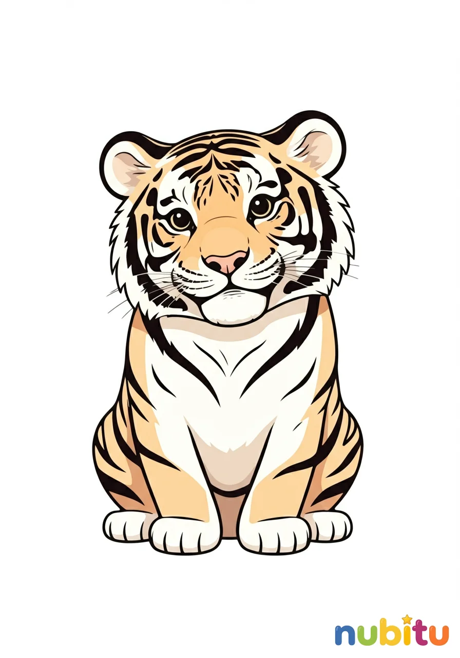 ¡Este tigre malayo está muy feliz de conocerte! Con tu imaginación y tus colores, puedes hacerlo aún más especial y lleno de vida.
