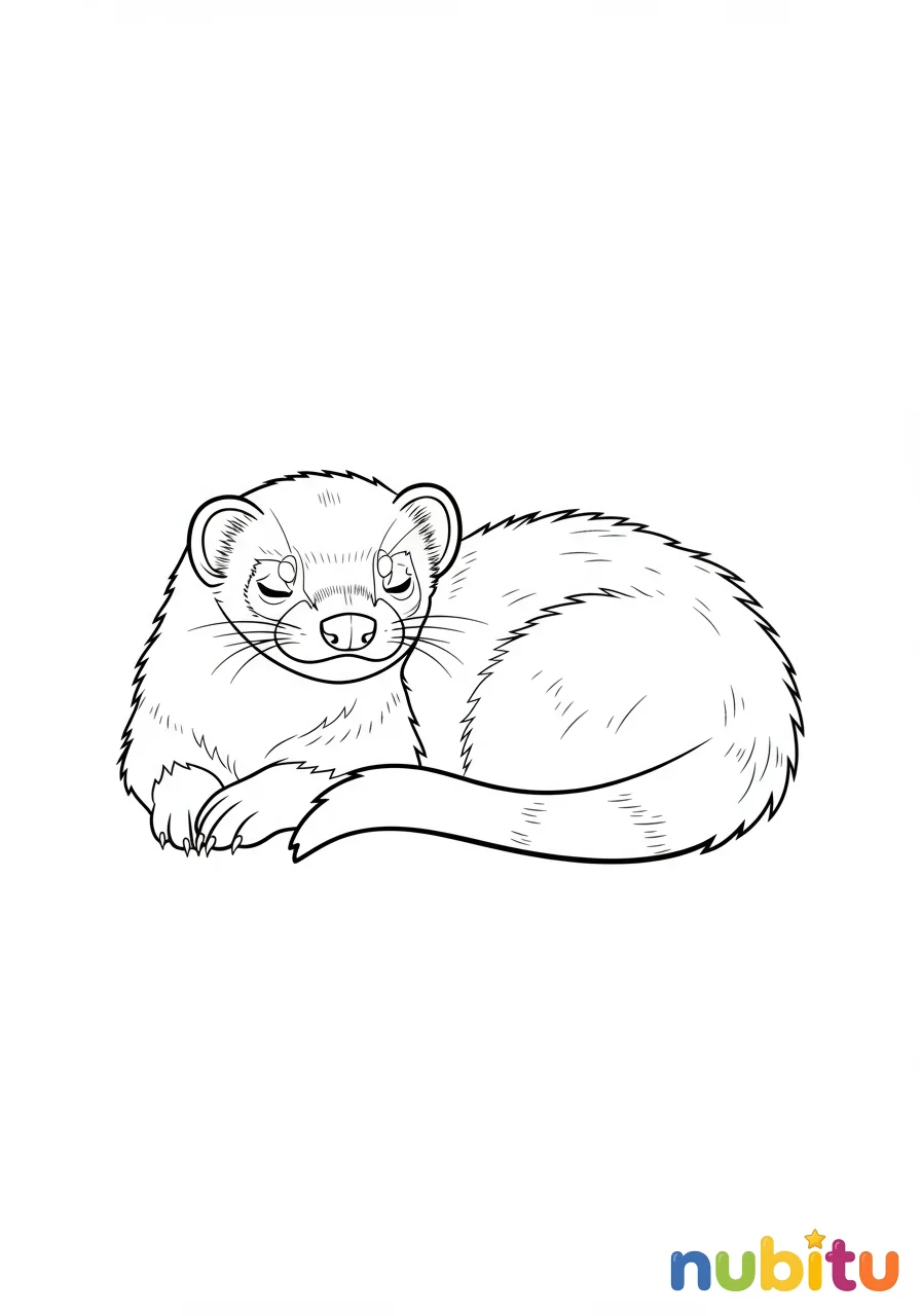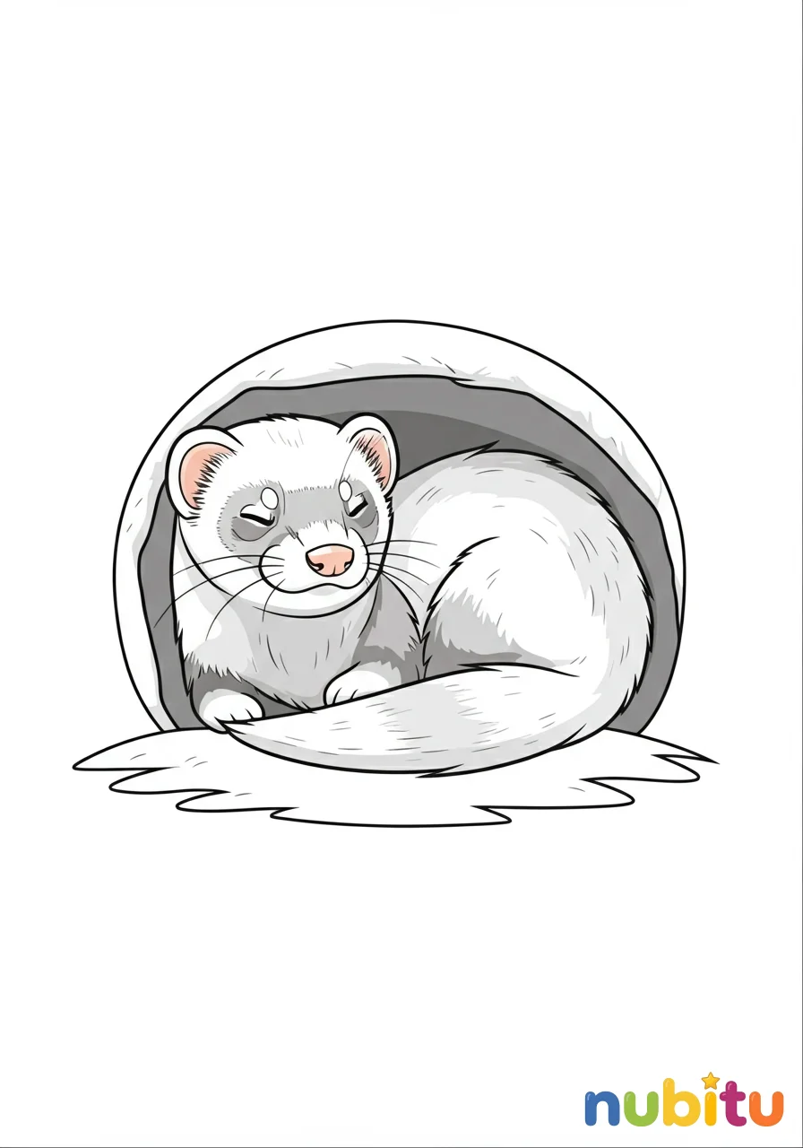 Mira qué tierno está este turón, acurrucado en una bolita muy apretada, ¡seguro que está soñando con muchas aventuras peludas! ¿Qué colores usarás para su suave pelaje mientras duerme tan plácidamente?