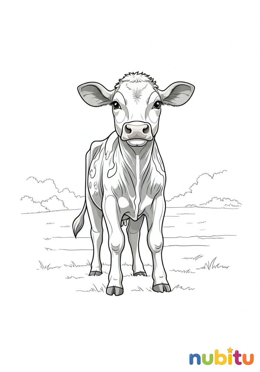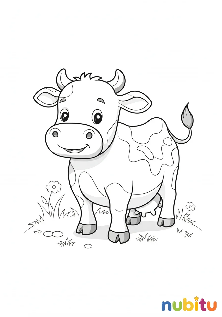 ¡Hola, pequeño artista! Aquí tienes una vaca muy amigable esperando que le des vida con tus colores favoritos. ¿Será blanca y negra, o quizás de otro color mágico? ¡Usa tu imaginación!