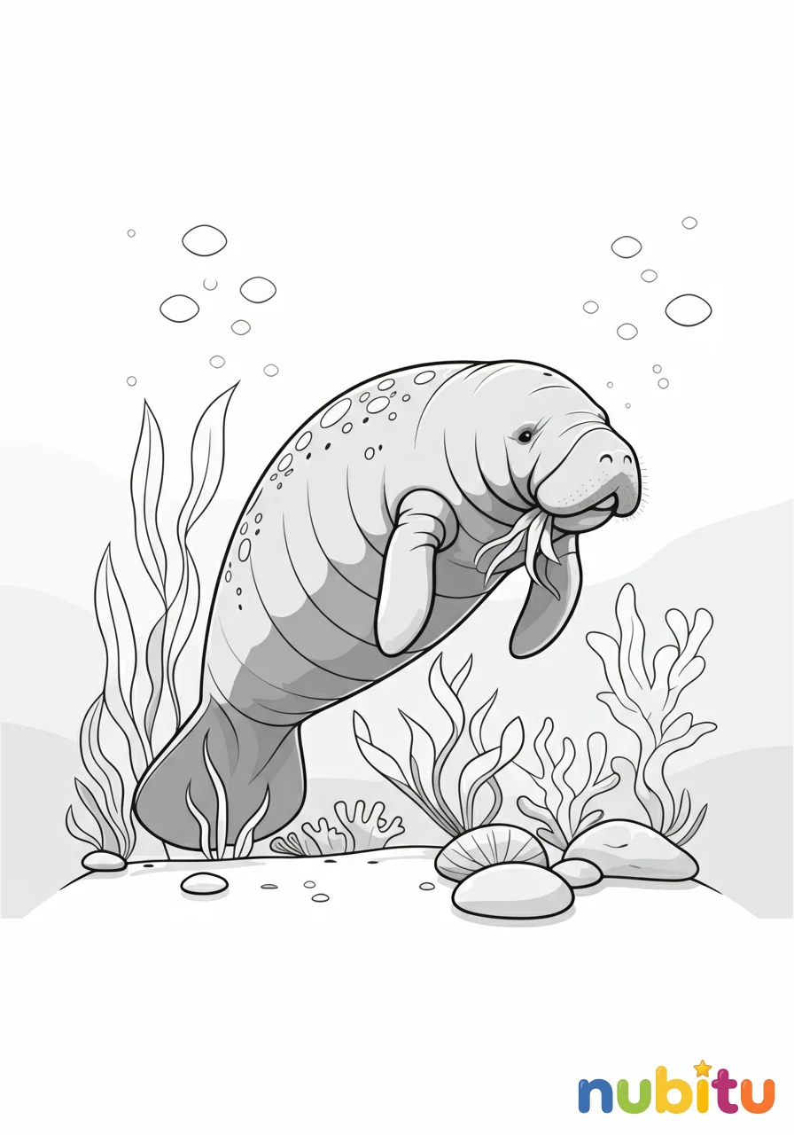 Manatíes para Colorear: ¡Aventuras Submarinas Te Esperan con Nubitu!