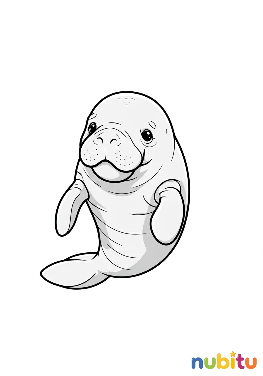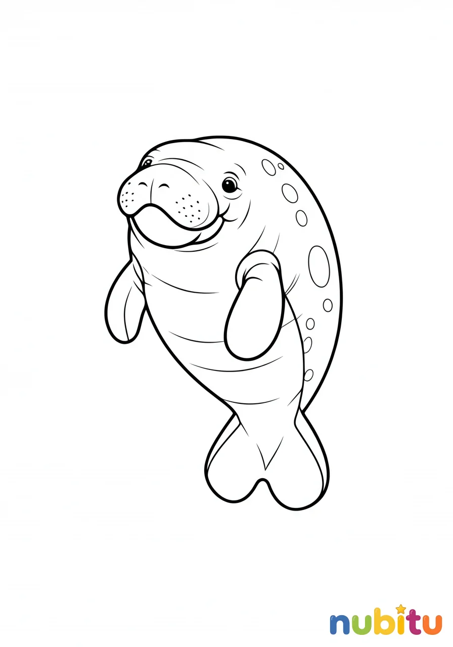 ¡Hola, amiguito! Aquí tienes un manatí muy simpático, flotando tranquilamente y esperando que lo llenes de colores. ¿De qué color será su piel suave?