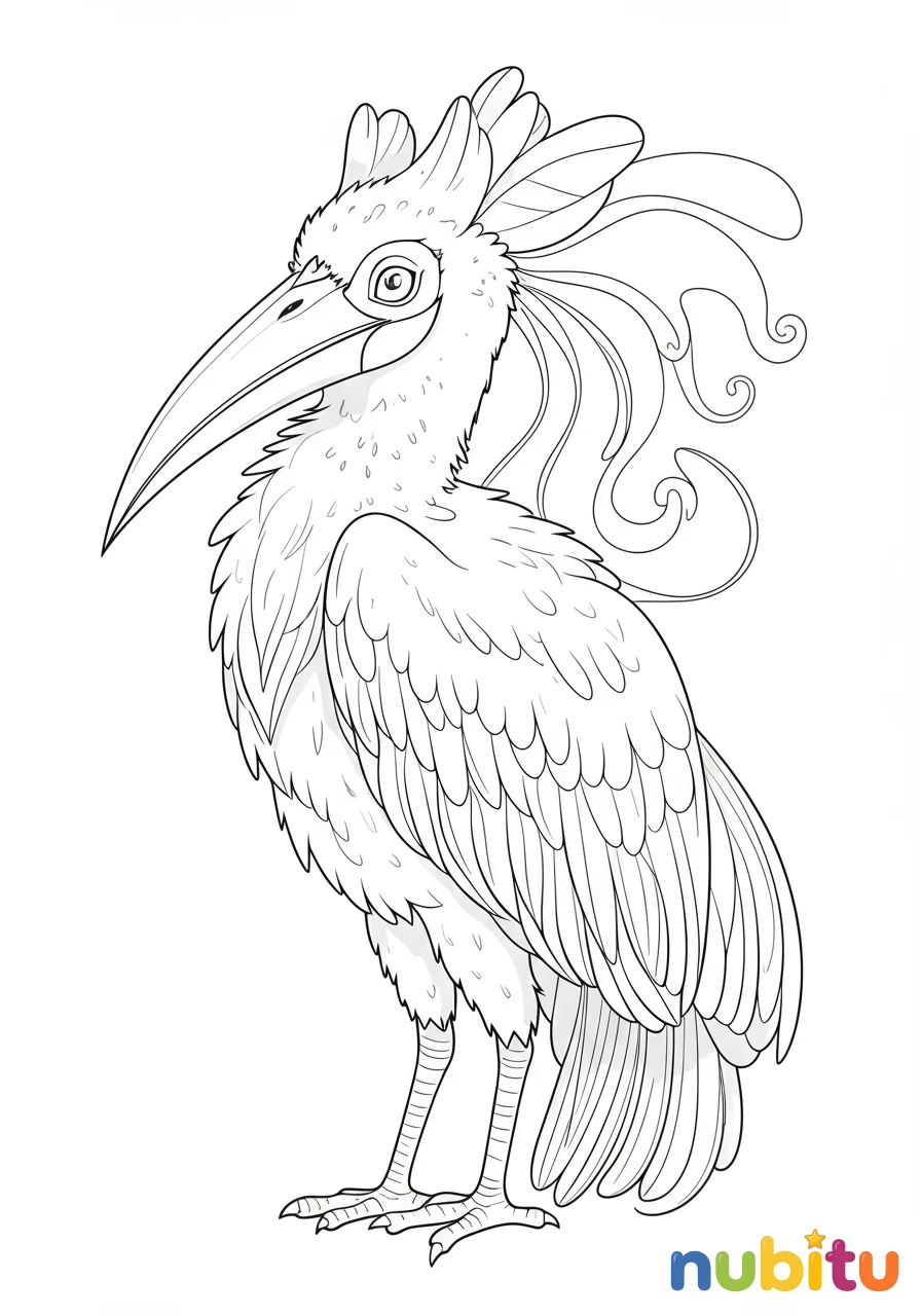Una criatura de ensueño, hecha de curvas y espirales, que parece flotar en la página, invitando a los pequeños a darle vida con sus tonos más brillantes.