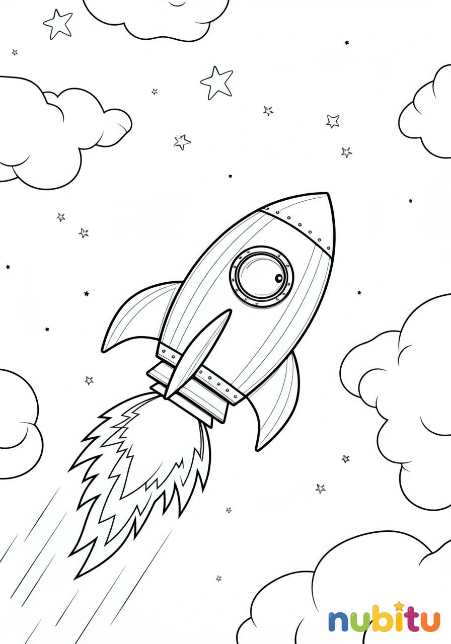 Sube a bordo de este cohete mágico que te llevará a las estrellas. ¡Usa tus colores favoritos para pintar un universo lleno de fantasía!