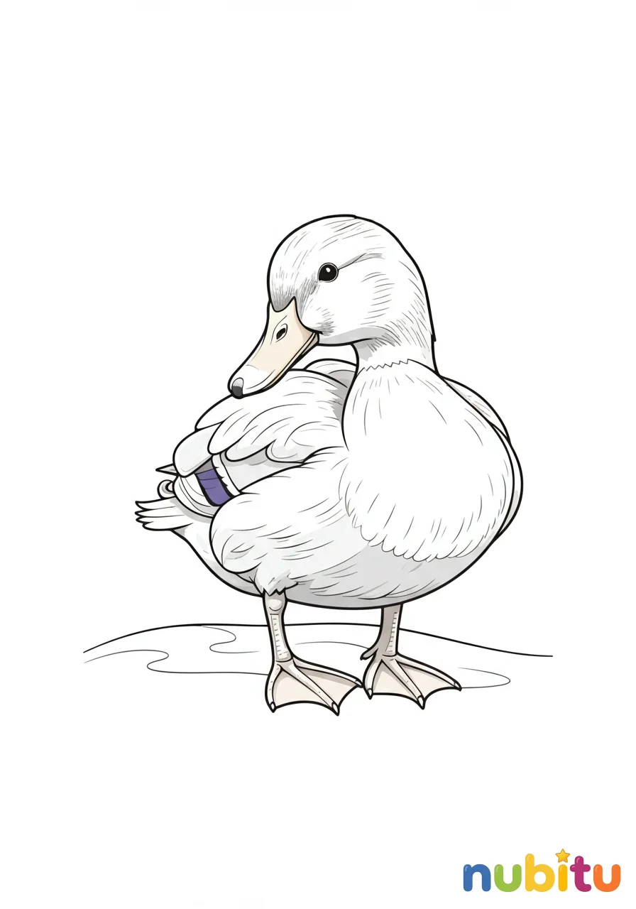 - Añade detalles a las plumas, el pico y las patas, usando trazos más pequeños y precisos. ¡Imagina cómo se vería un pato real!