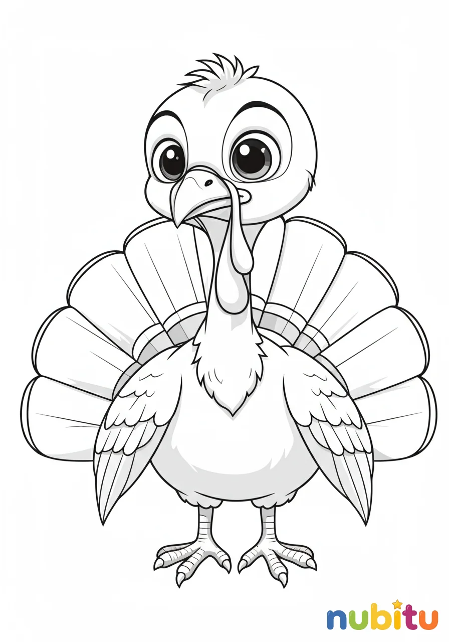 ¿Qué estará mirando este pavo con esos ojos tan grandes y curiosos? Parece que ha descubierto algo muy interesante. ¡Ayúdale a cobrar vida con tus colores!
