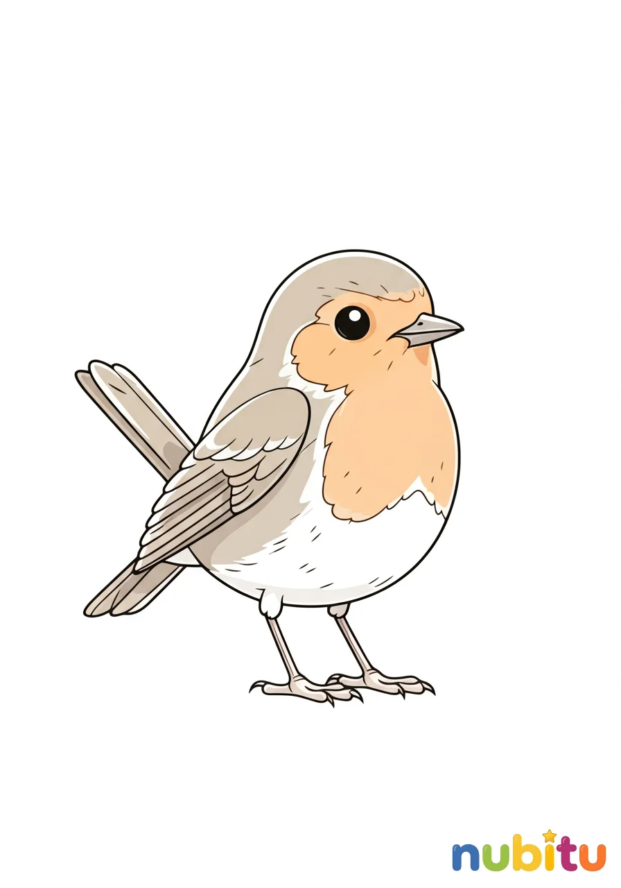 Este pequeño petirrojo es muy curioso. Está mirando algo interesante en el suelo. ¡Ayúdale a descubrir el mundo con tus colores brillantes!