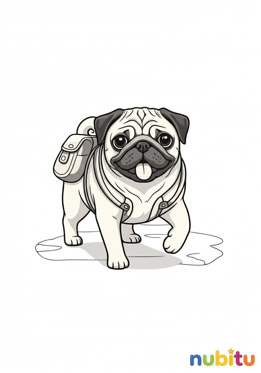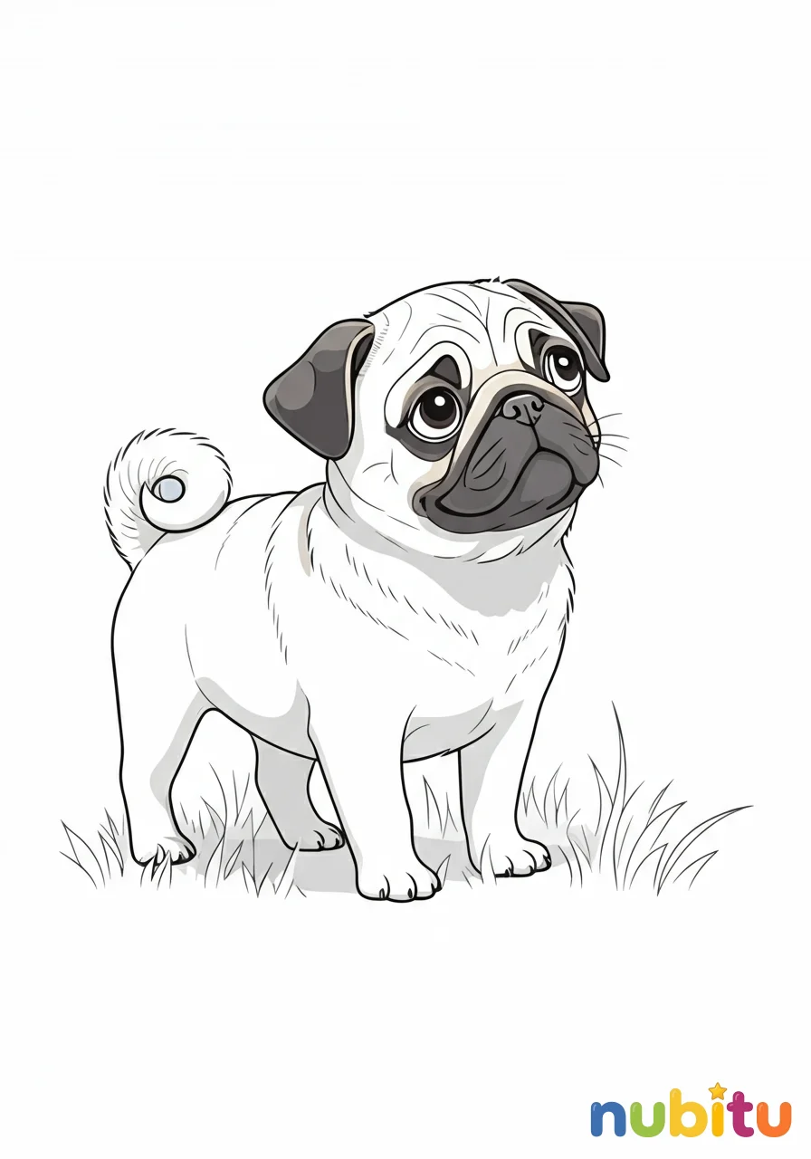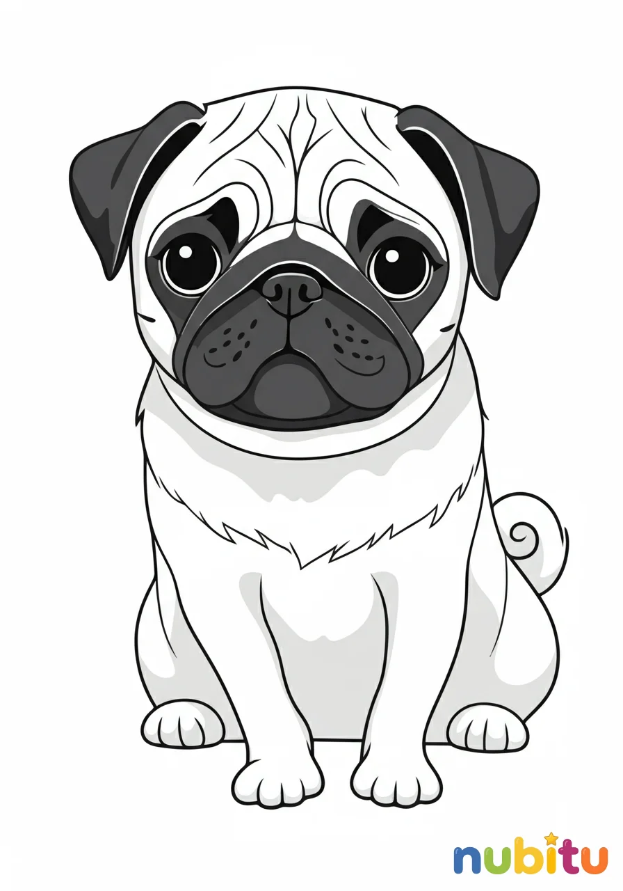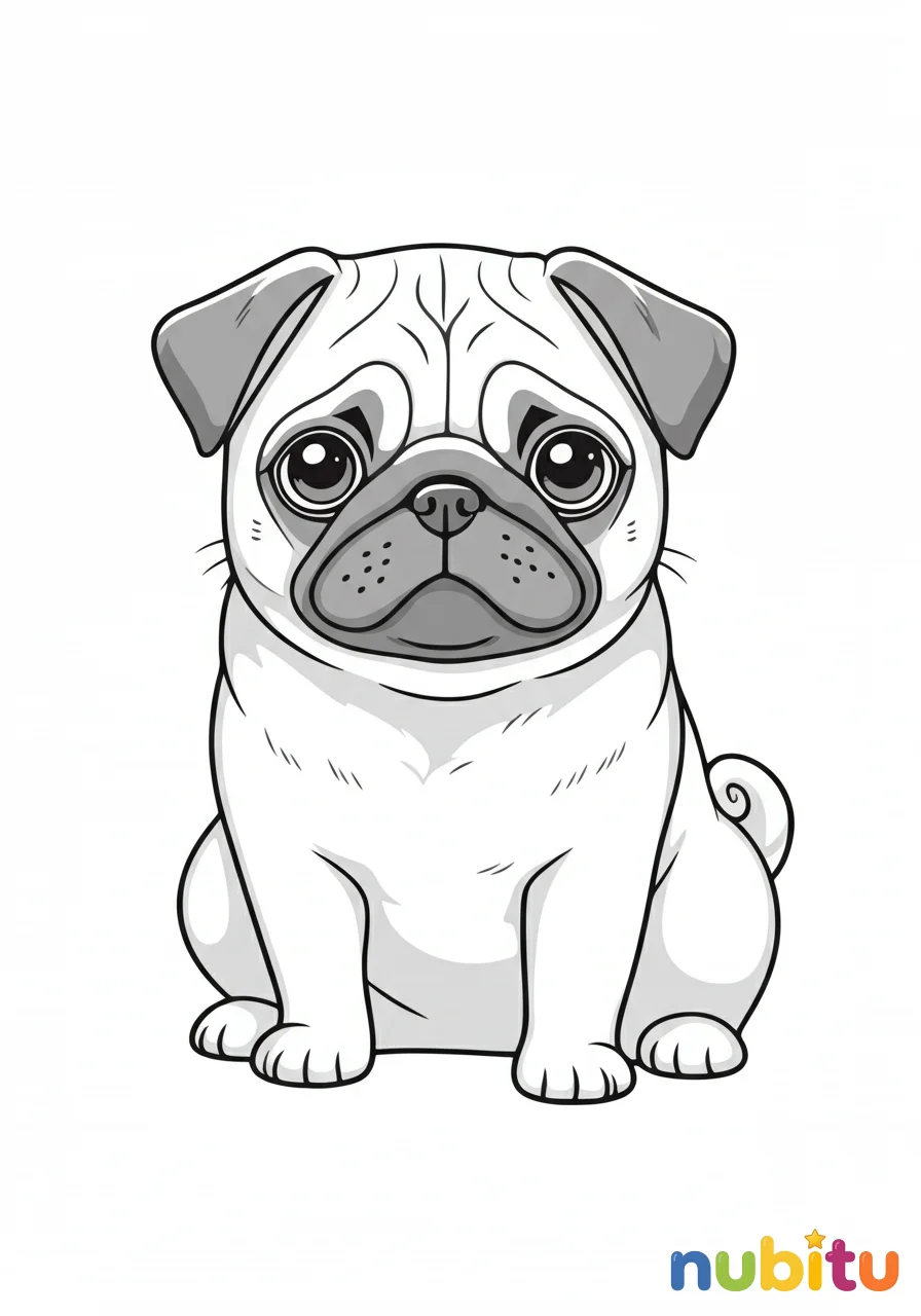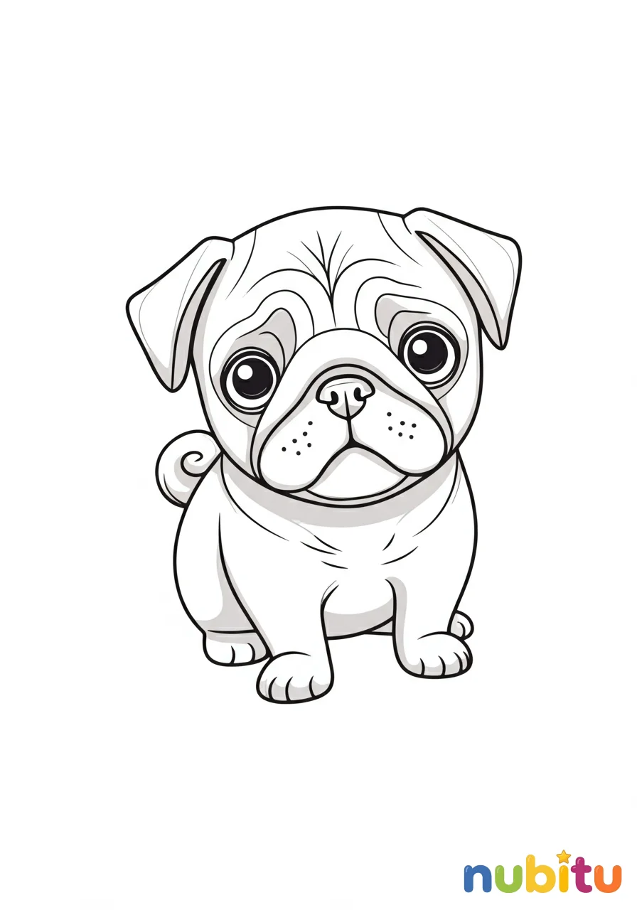 ¡Mira a este amigable pug! ¿De qué color serán sus grandes ojos y su nariz juguetona? ¡Usa tus colores favoritos para darle vida!