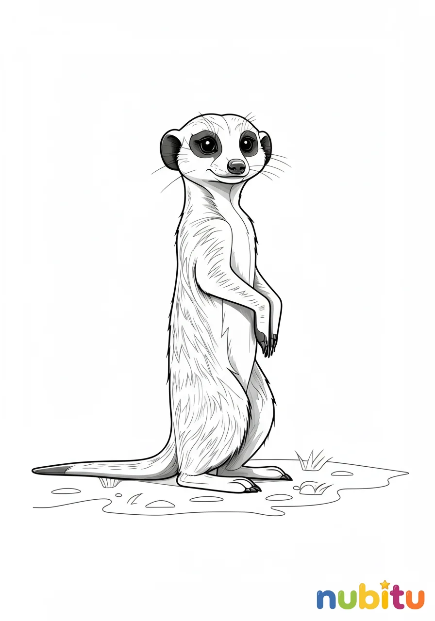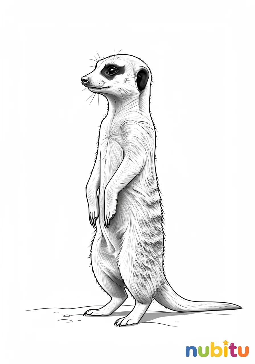 Esta suricata está lista para jugar. Imagina que está buscando algo divertido en la tierra. ¡Usa tus colores más vibrantes para que su juego sea inolvidable!
