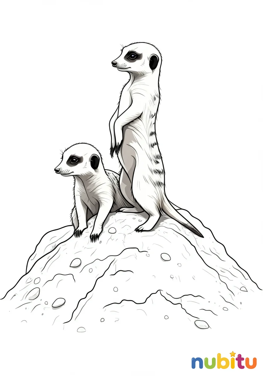 ¡Hola, pequeños artistas! ¿Están listos para una aventura en el desierto, llena de risas y mucha imaginación? Hoy vamos a conocer a unos amigos muy especiales, con ojos curiosos y poses divertidas. ¡Prepárense para dibujar, colorear y dar vida a las suricatas más simpáticas del mundo! Con cada trazo, exploraremos su mundo y crearemos obras de arte que nos llenarán de alegría. ¡Que empiece la diversión creativa!