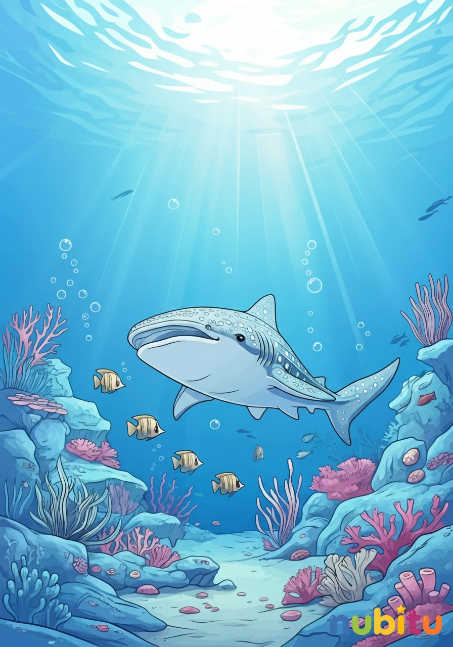 Una mañana, Nubitu se despertó con el sonido de un gaviota y una idea brillante revoloteando en su cabeza. ‘¡Hoy será un día de exploración!’, exclamó, saltando de la cama. No era una exploración de montañas o bosques, sino una submarina, sin mojarse ni un poquito. Con su cuaderno de bocetos y un estuche lleno de lápices, Nubitu se sentó en su rincón favorito, imaginando las profundidades del océano. De repente, una chispa de inspiración lo golpeó: ¡dibujaría al Tiburón Ballena! Había leído sobre estas criaturas gigantes y amigables que filtran el agua para alimentarse, y su piel con patrones de puntos le parecía fascinante. Cerró los ojos y se imaginó nadando junto a uno, sintiendo la corriente y observando cómo se movía con una gracia increíble. Abrió los ojos y el lápiz comenzó a bailar sobre el papel. Primero, el contorno suave de su cuerpo gigantesco, luego los pequeños ojos curiosos y la enorme boca que se abría para atrapar plancton. Dibujó los patrones de puntos, cada uno único como una estrella en el cielo nocturno. Alrededor, añadió pequeños peces que nadaban sin miedo, y algas marinas que se mecían al ritmo de las olas imaginarias. Cada trazo era una aventura, cada color una inmersión más profunda. Cuando terminó, su Tiburón Ballena parecía casi real, listo para nadar fuera de la página. Nubitu sonrió. Había explorado el océano desde su silla, y había traído a casa un amigo gigante y gentil, todo gracias al poder de su imaginación y sus lápices.
