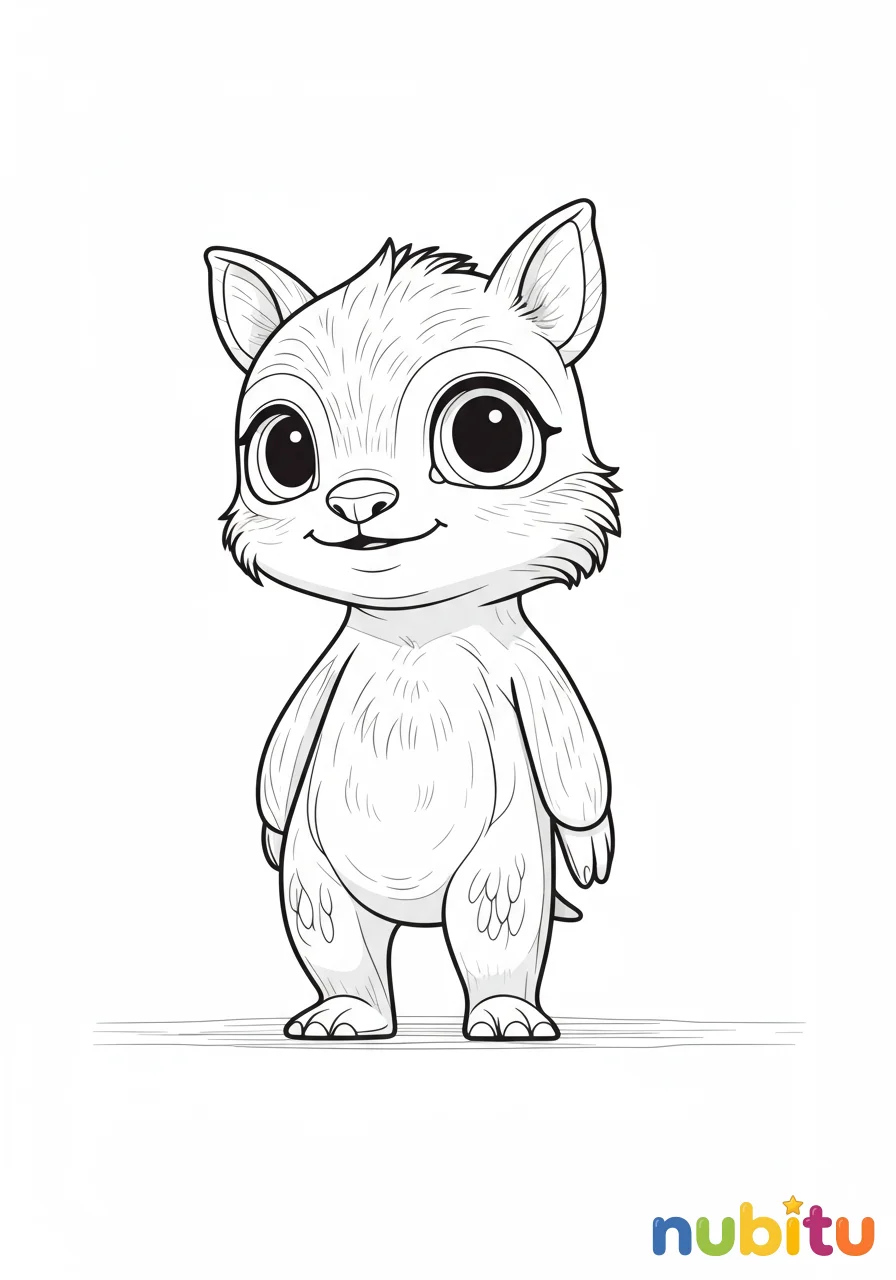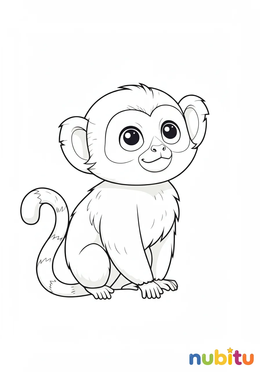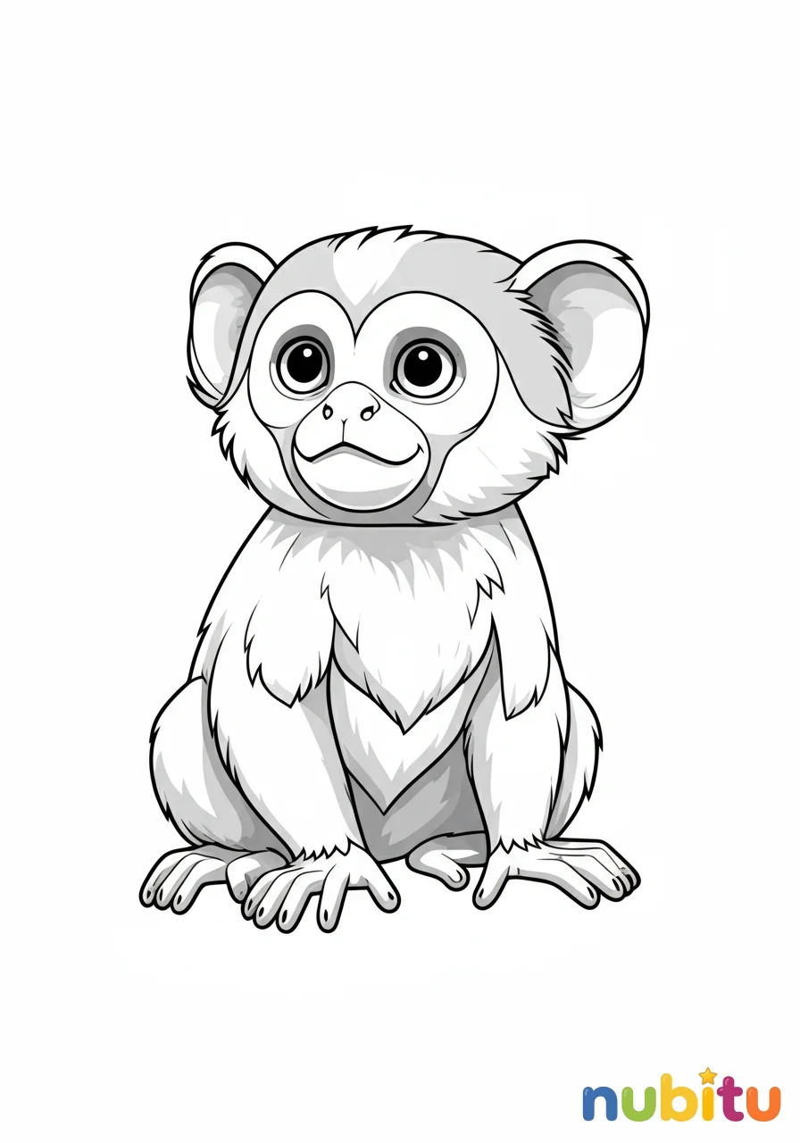 Aquí vemos a Tití en un momento de calma, soñando con mundos fantásticos. Su pose relajada y su mirada pensativa te invitan a usar los colores más suaves y mágicos para crear un ambiente de paz y ensueño alrededor de nuestro amigo.