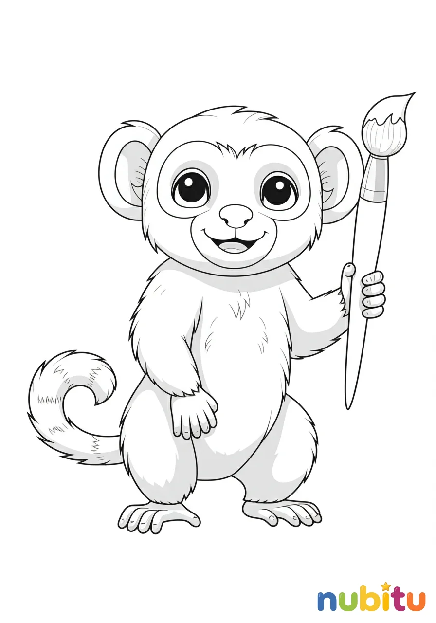 ¡Mira a Tití, nuestro amiguito artista, listo para dibujar! ¿Qué colores le pondrás a su sonrisa y a su pincel? ¡Imagina y crea!